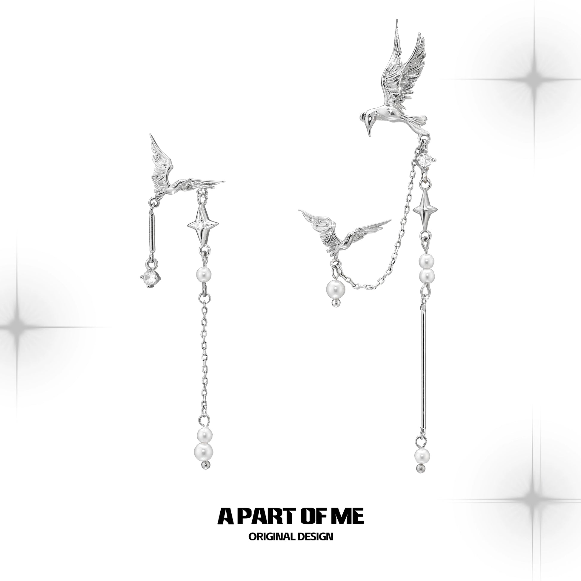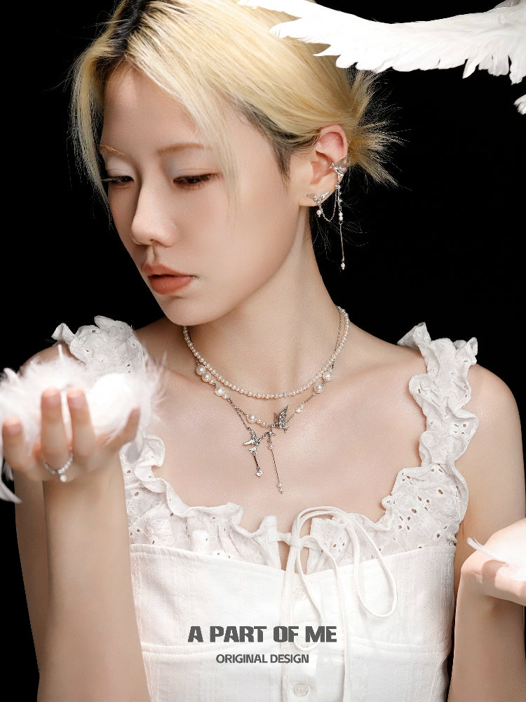 Flying Bird Pearl Ear Cuffs