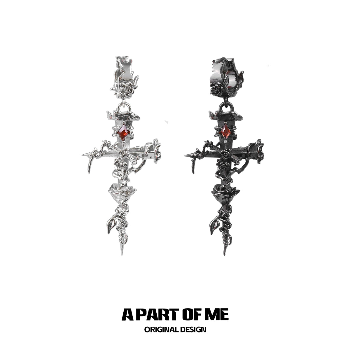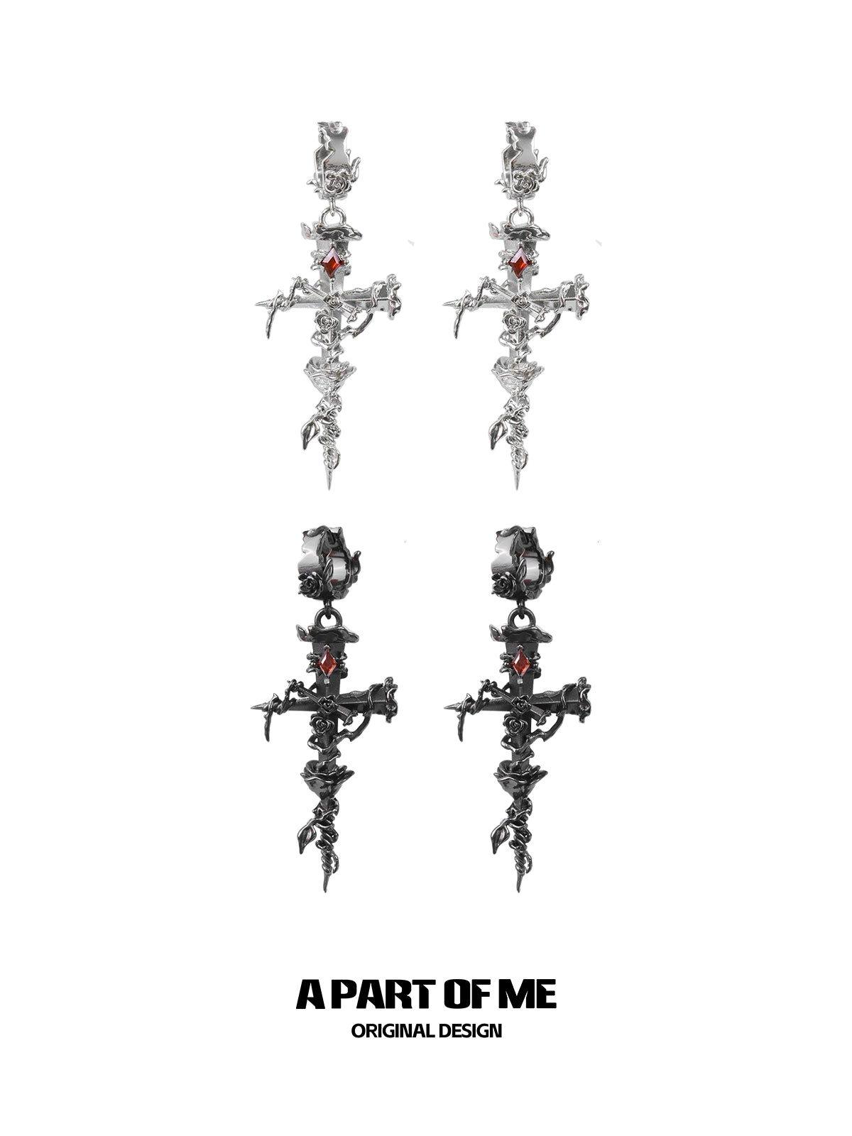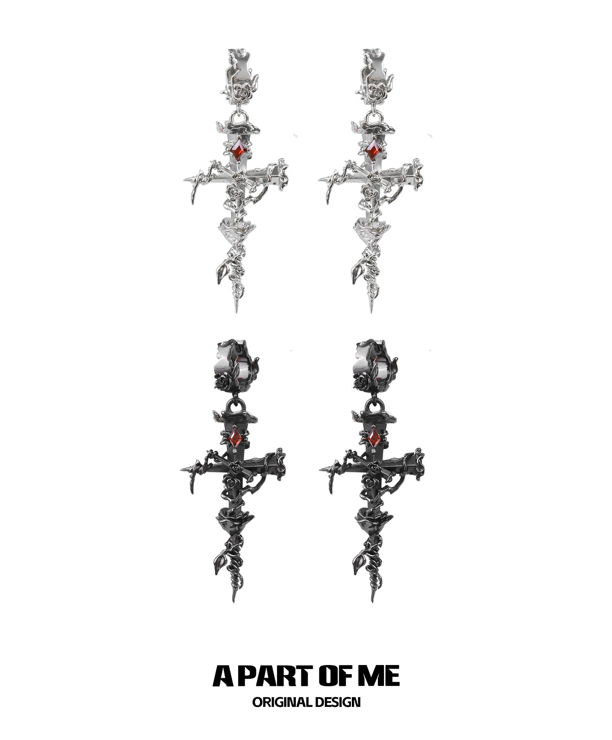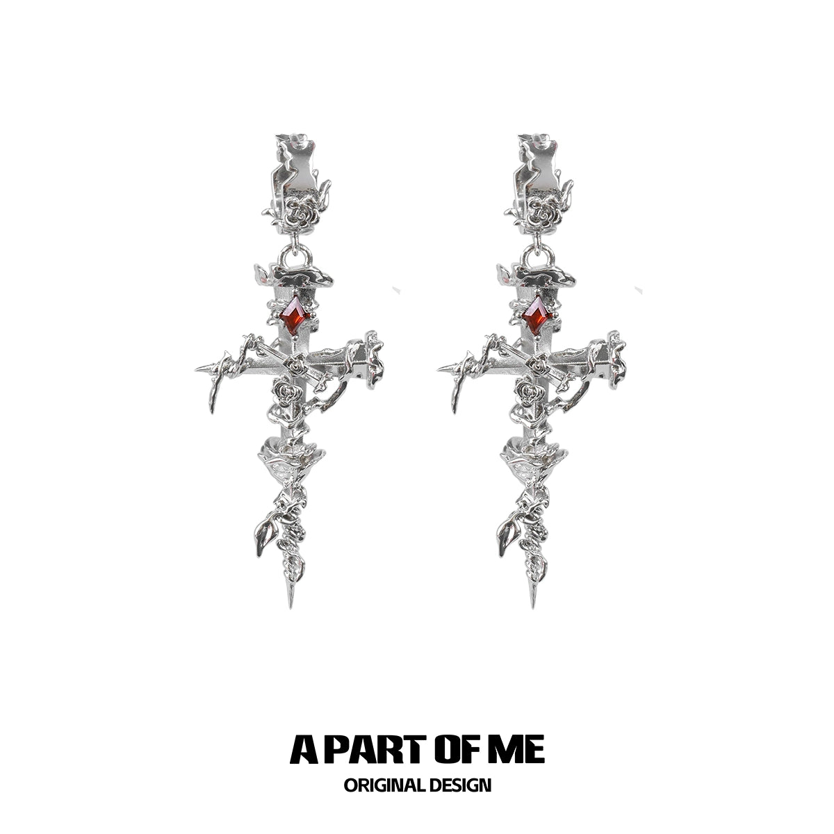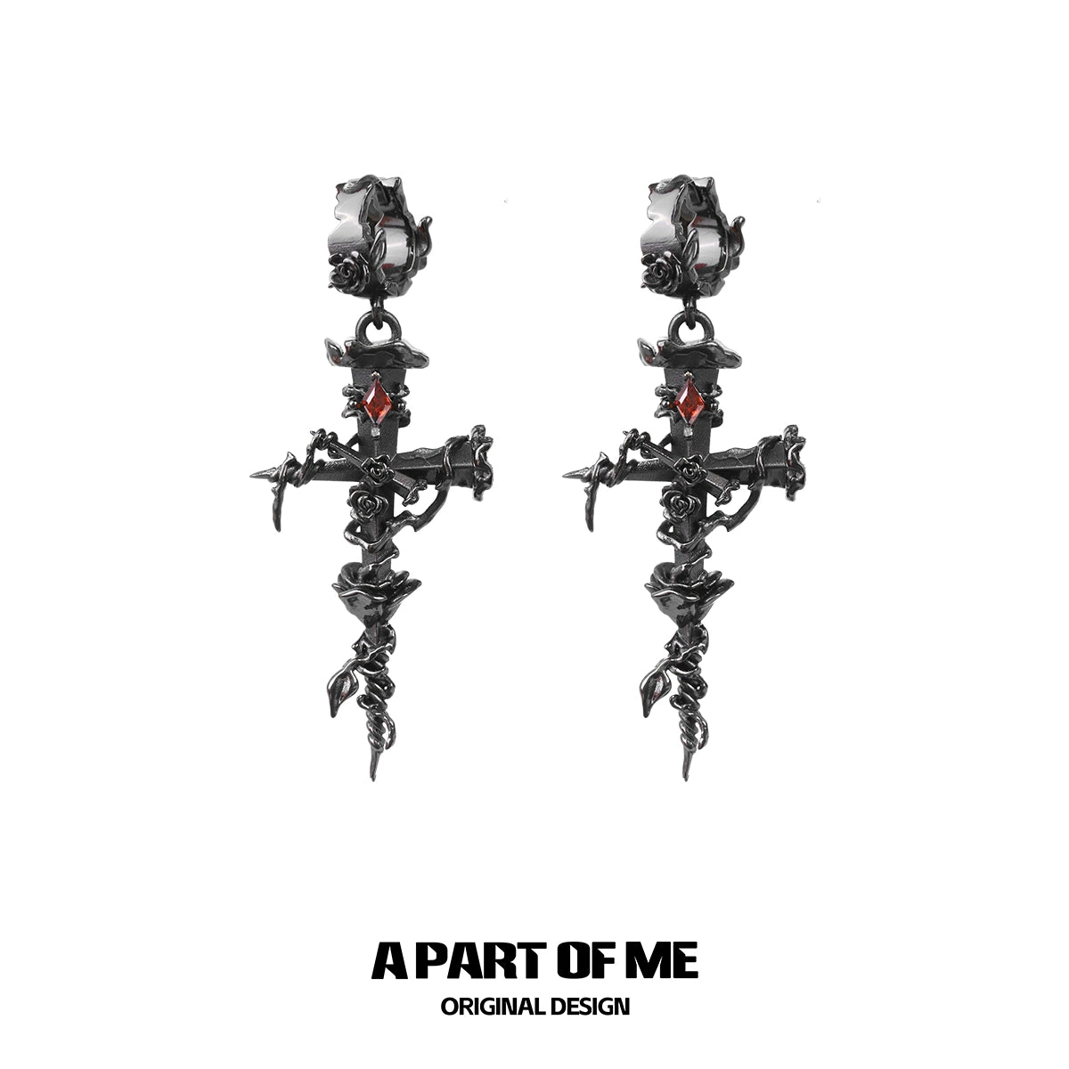 Thorned Rose Cross Earrings