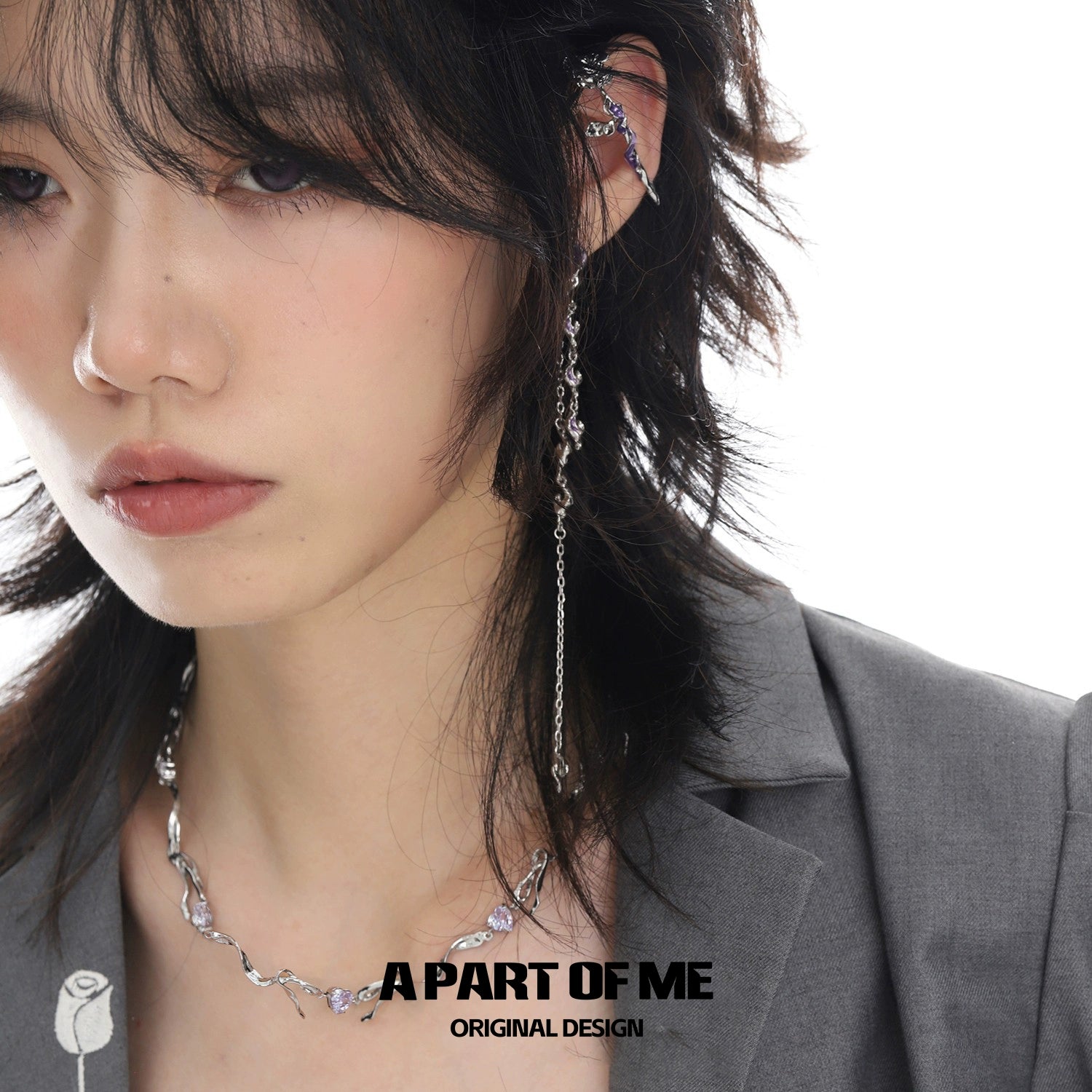 Purple Rose Gemstone Ear Cuffs