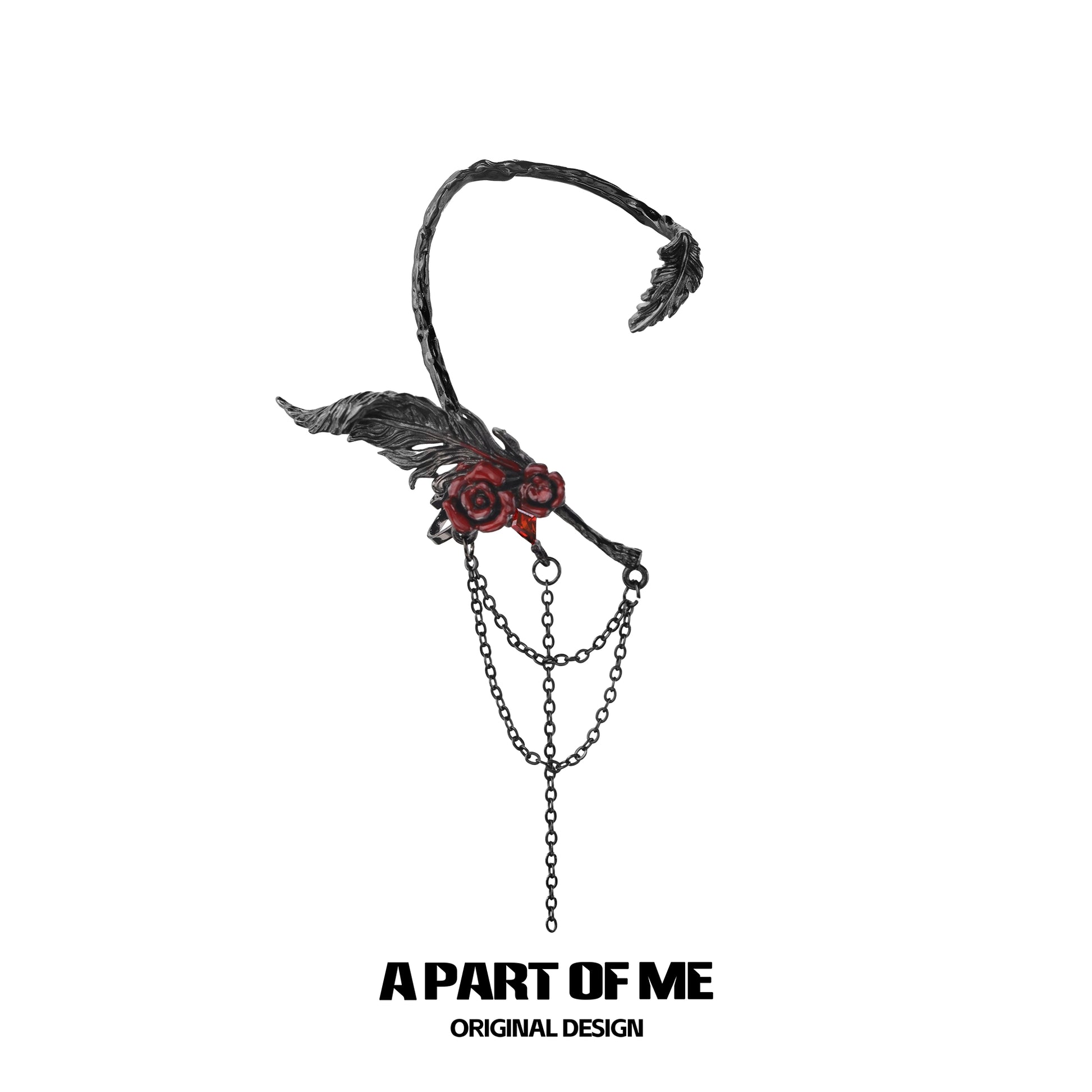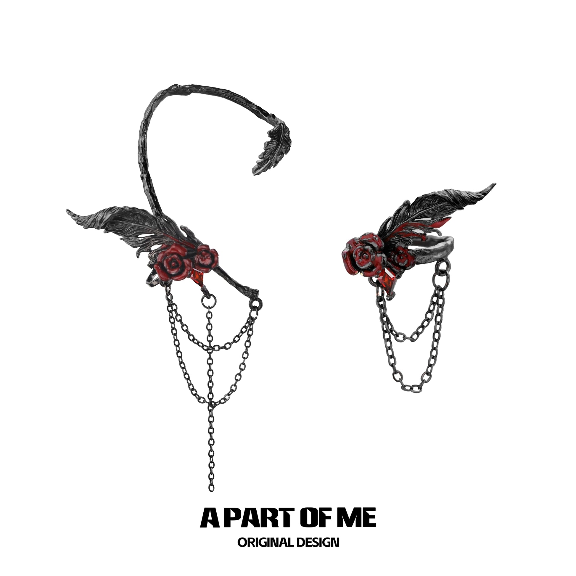 Red Lady Feather Rose Ear Clips