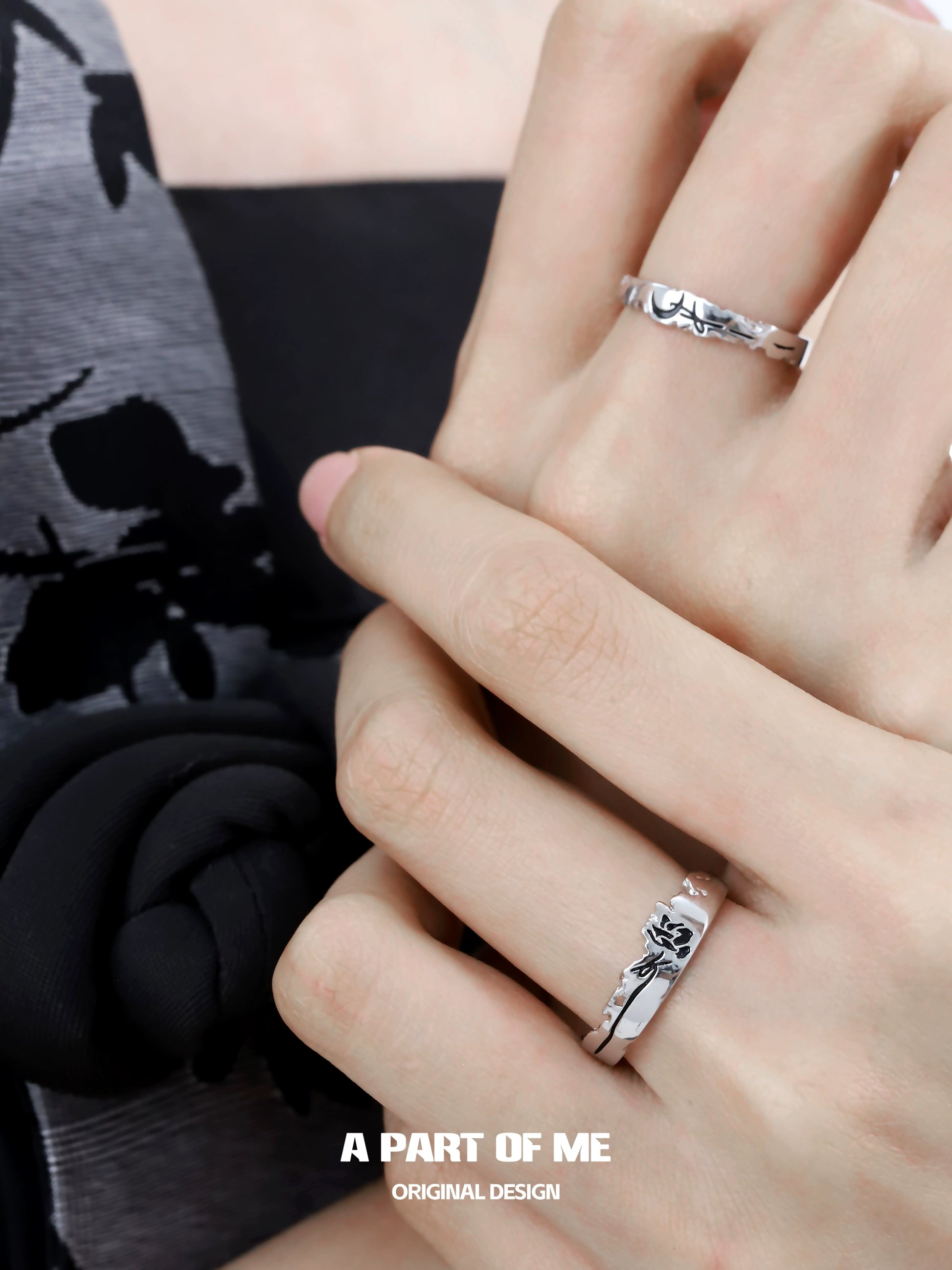 Moon Rose Couple Rings