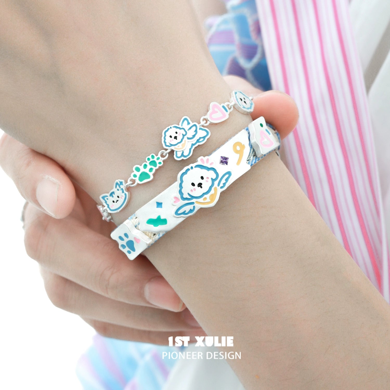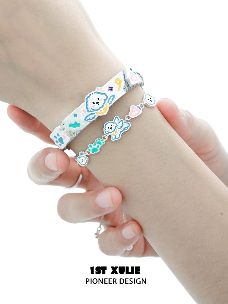 Cute Angel Cat & Puppy Leather Bracelet