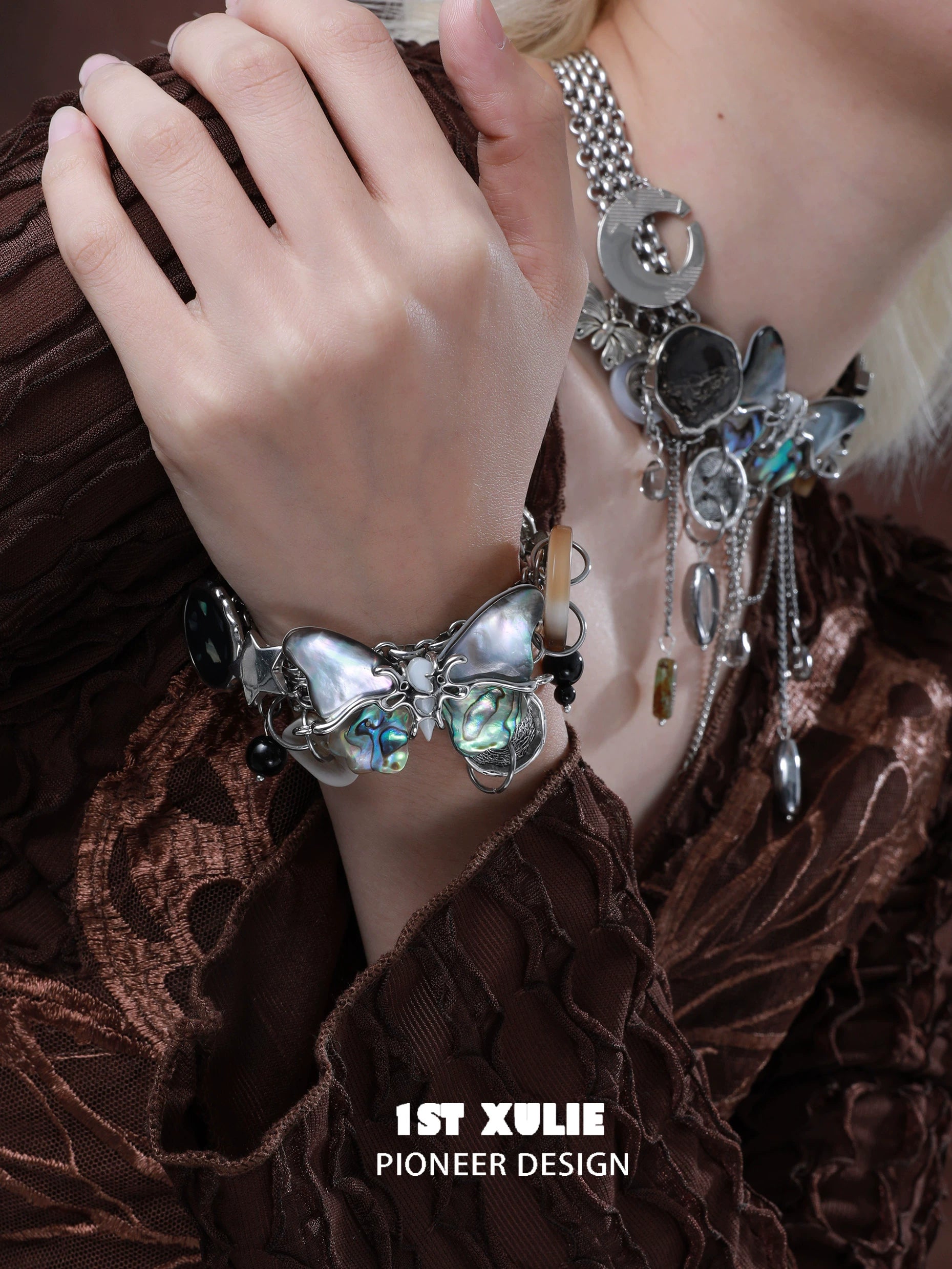 Retro Punk Butterfly Button Bracelet
