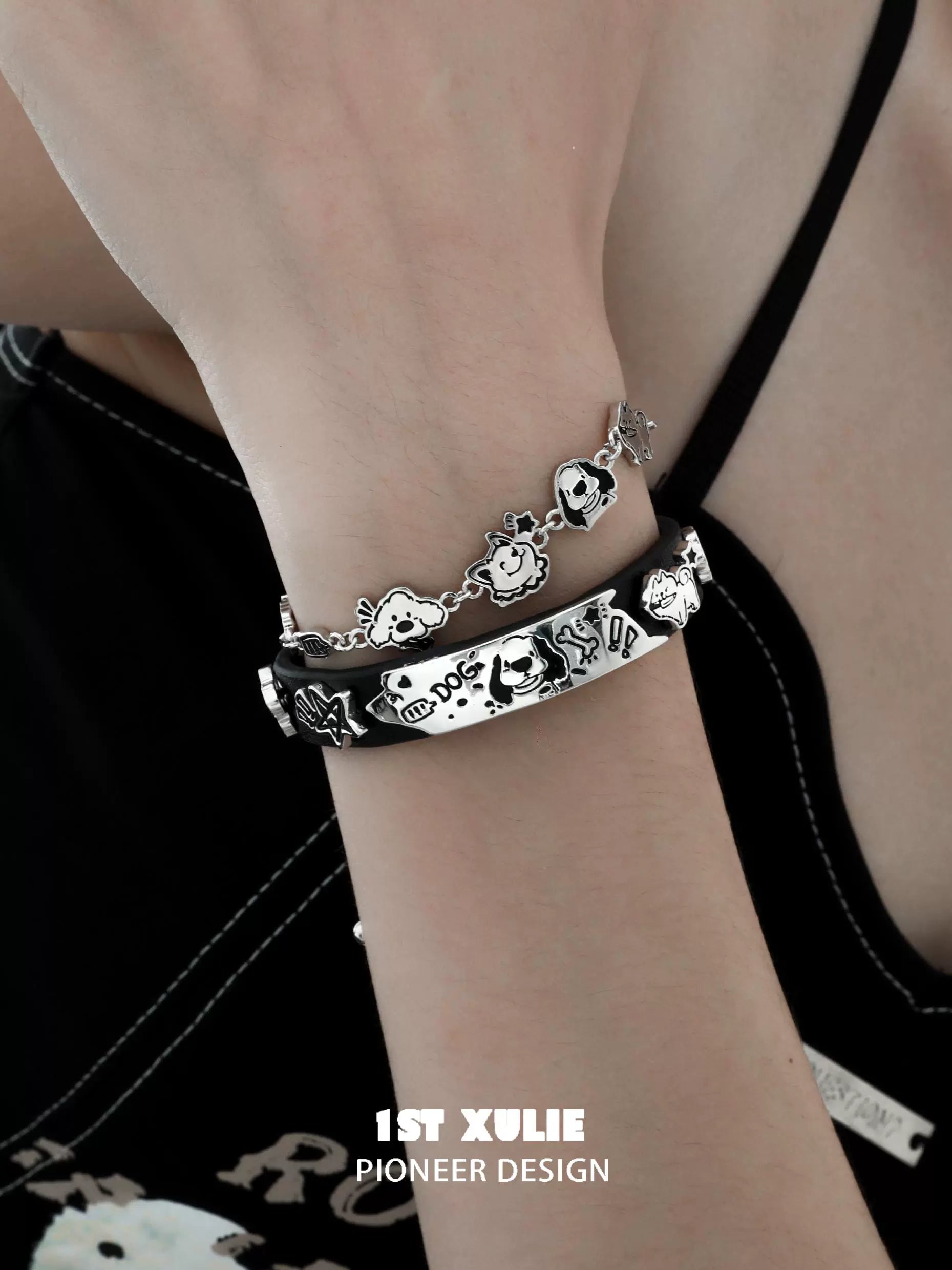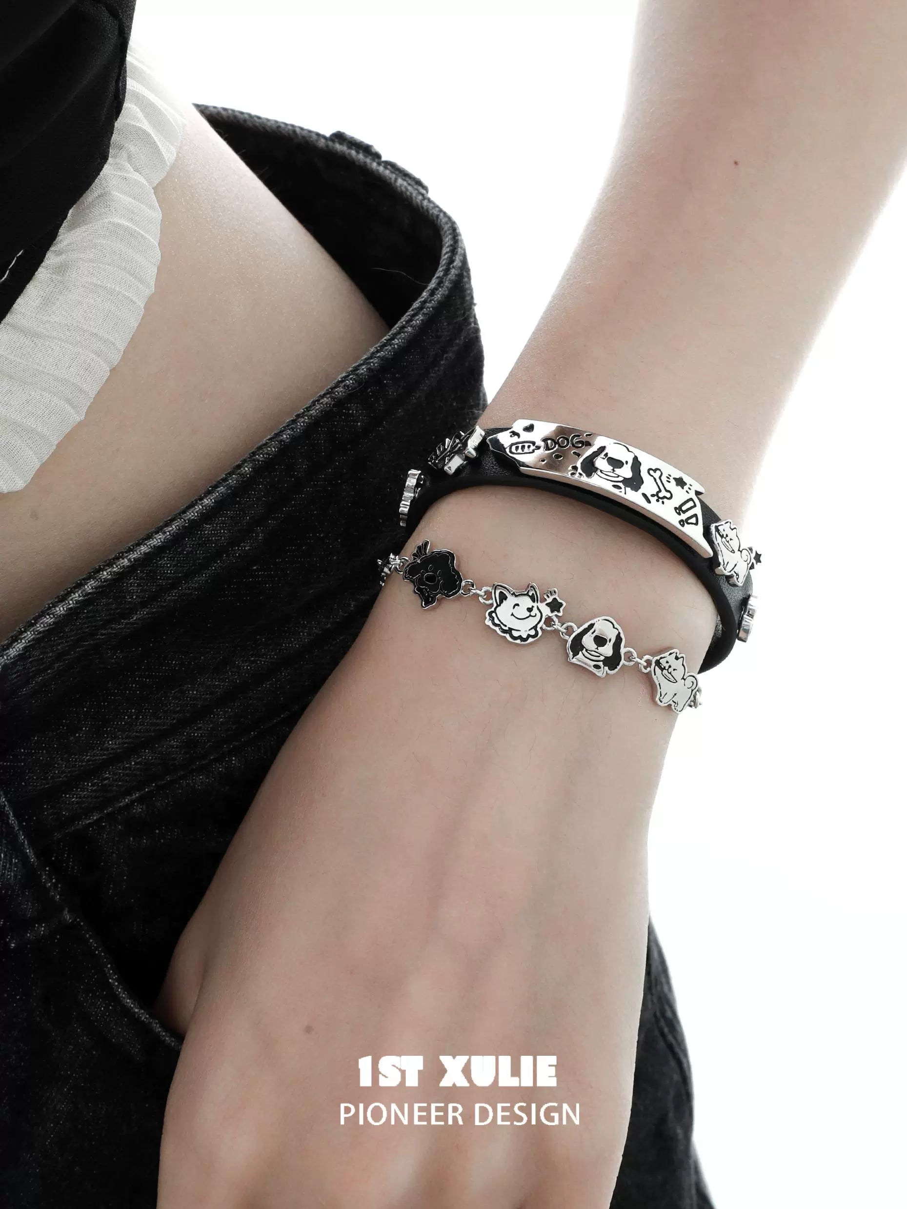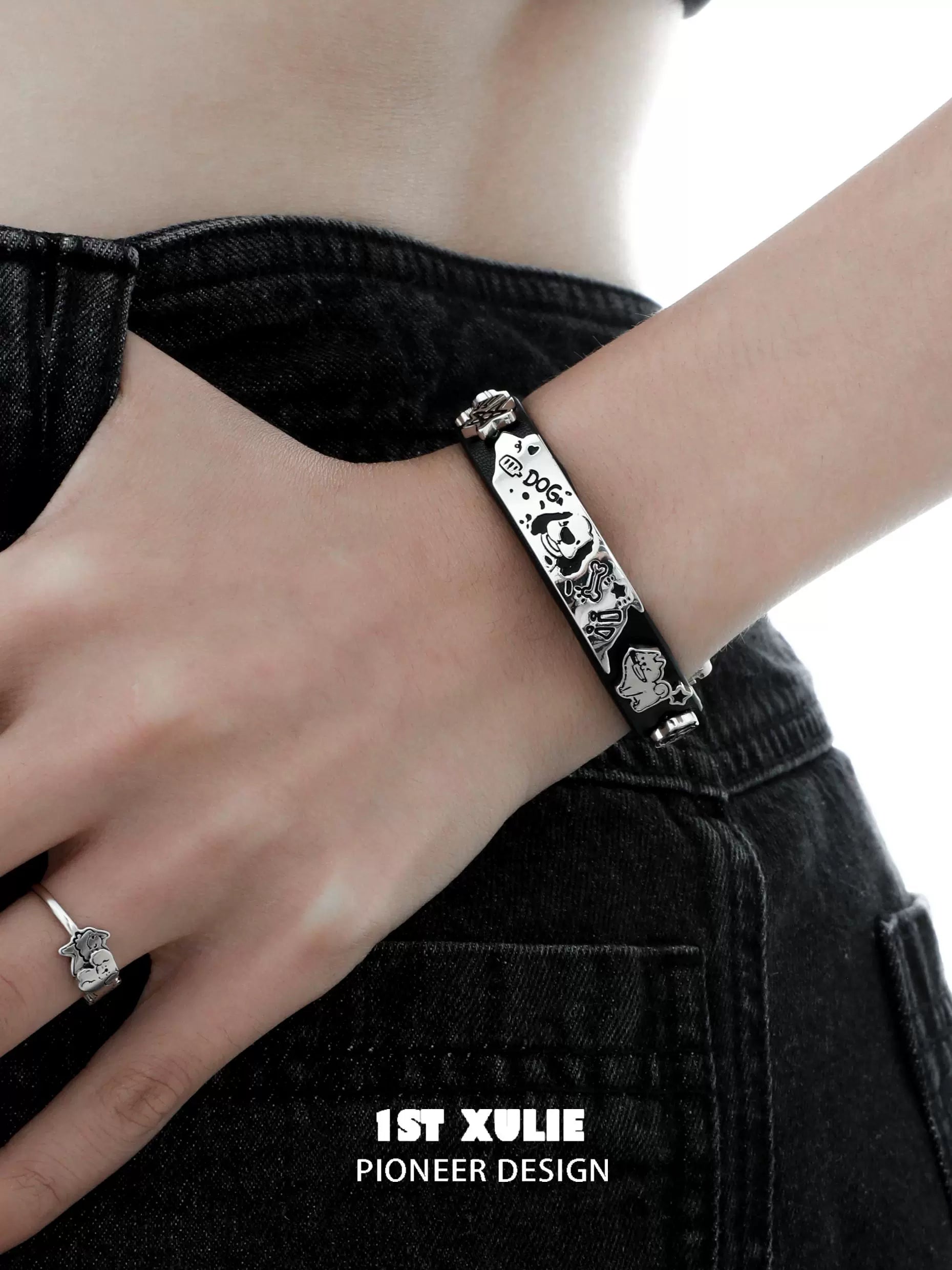 Y2K Playful Puppy Leather Bracelet