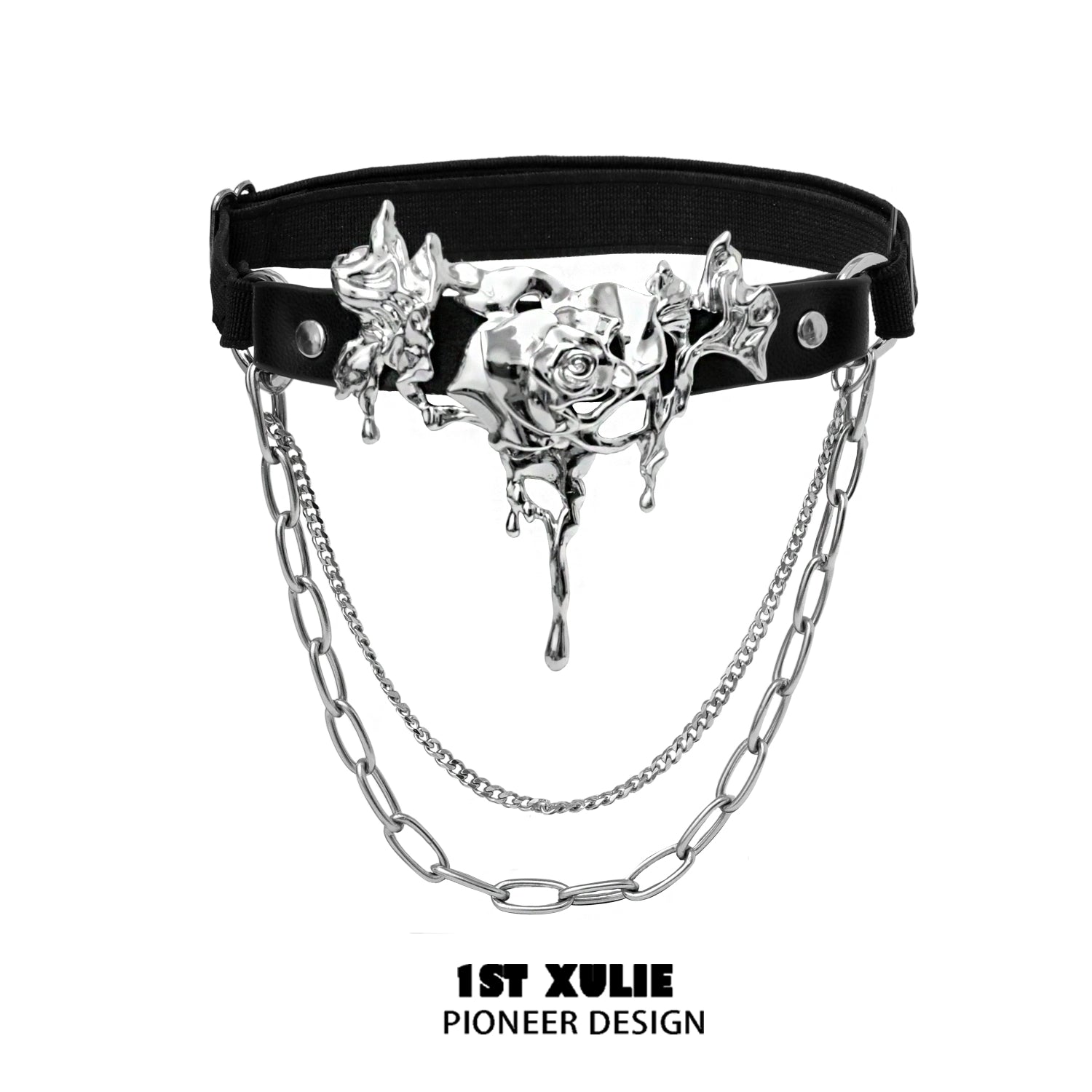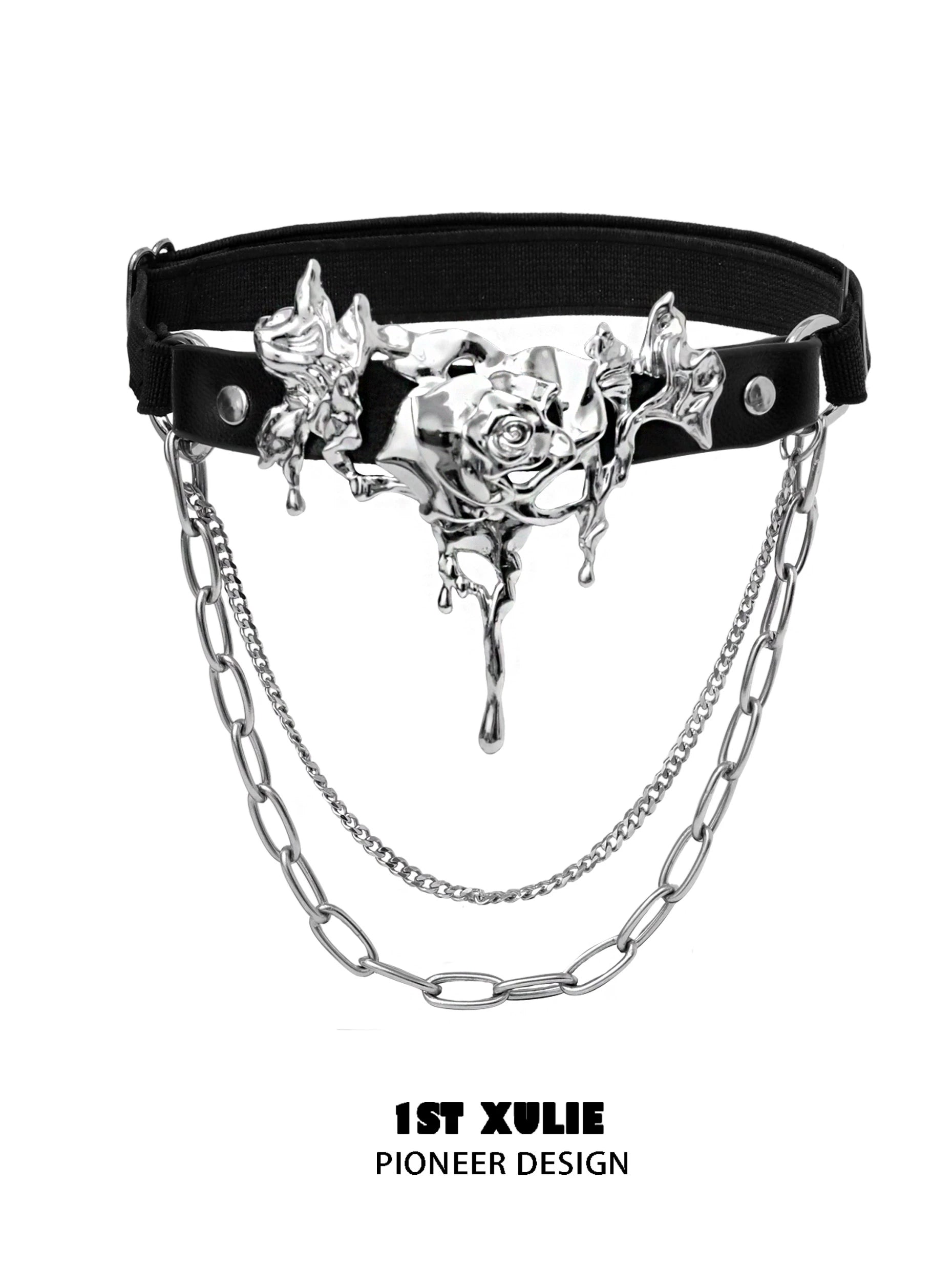 Gothic Y2K Dark Cyber Rose Thigh Chain