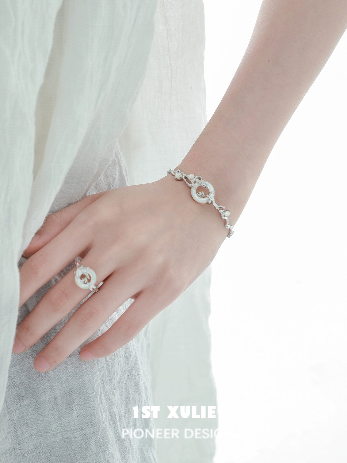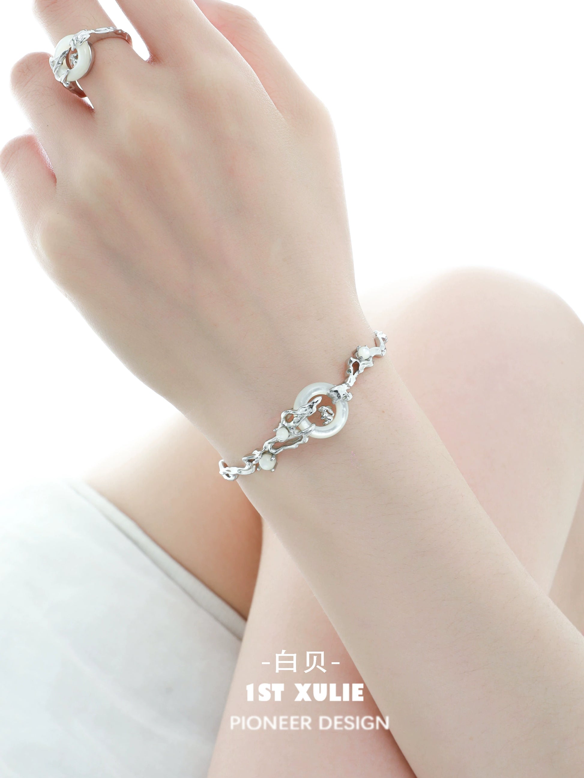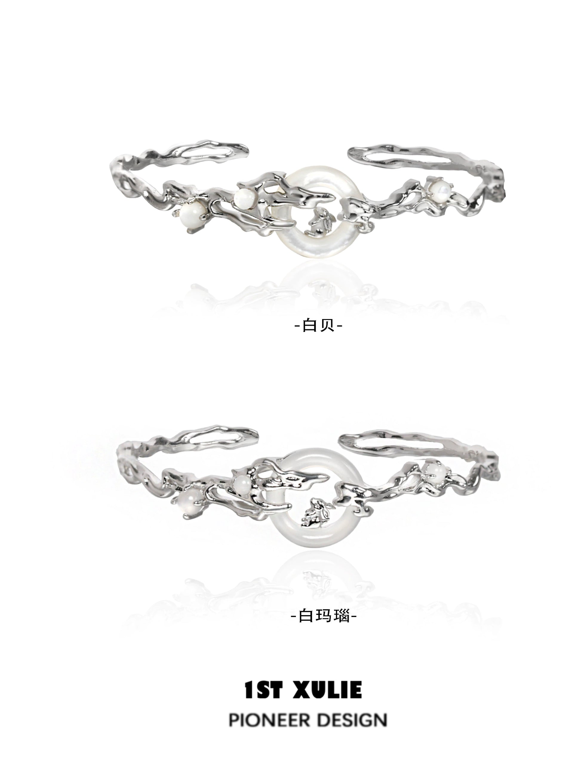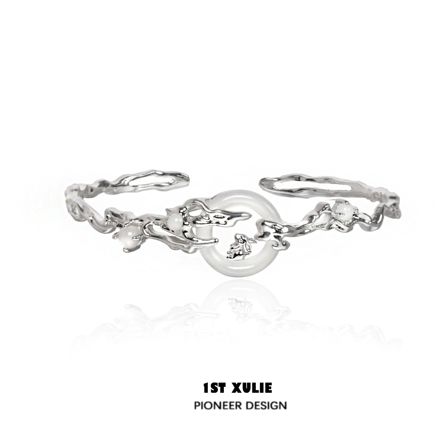 Jade Rabbit White Agate Silver Bracelet