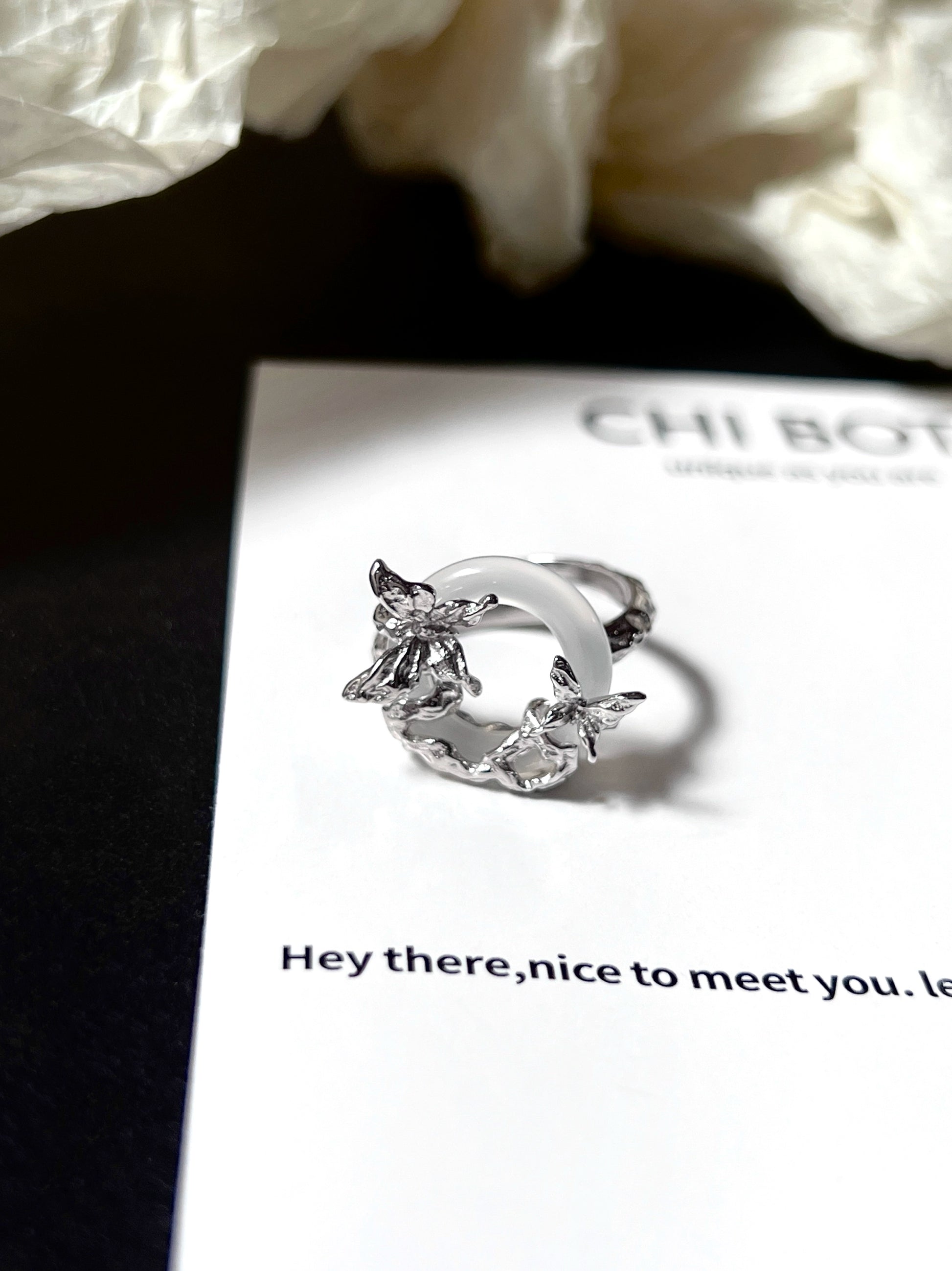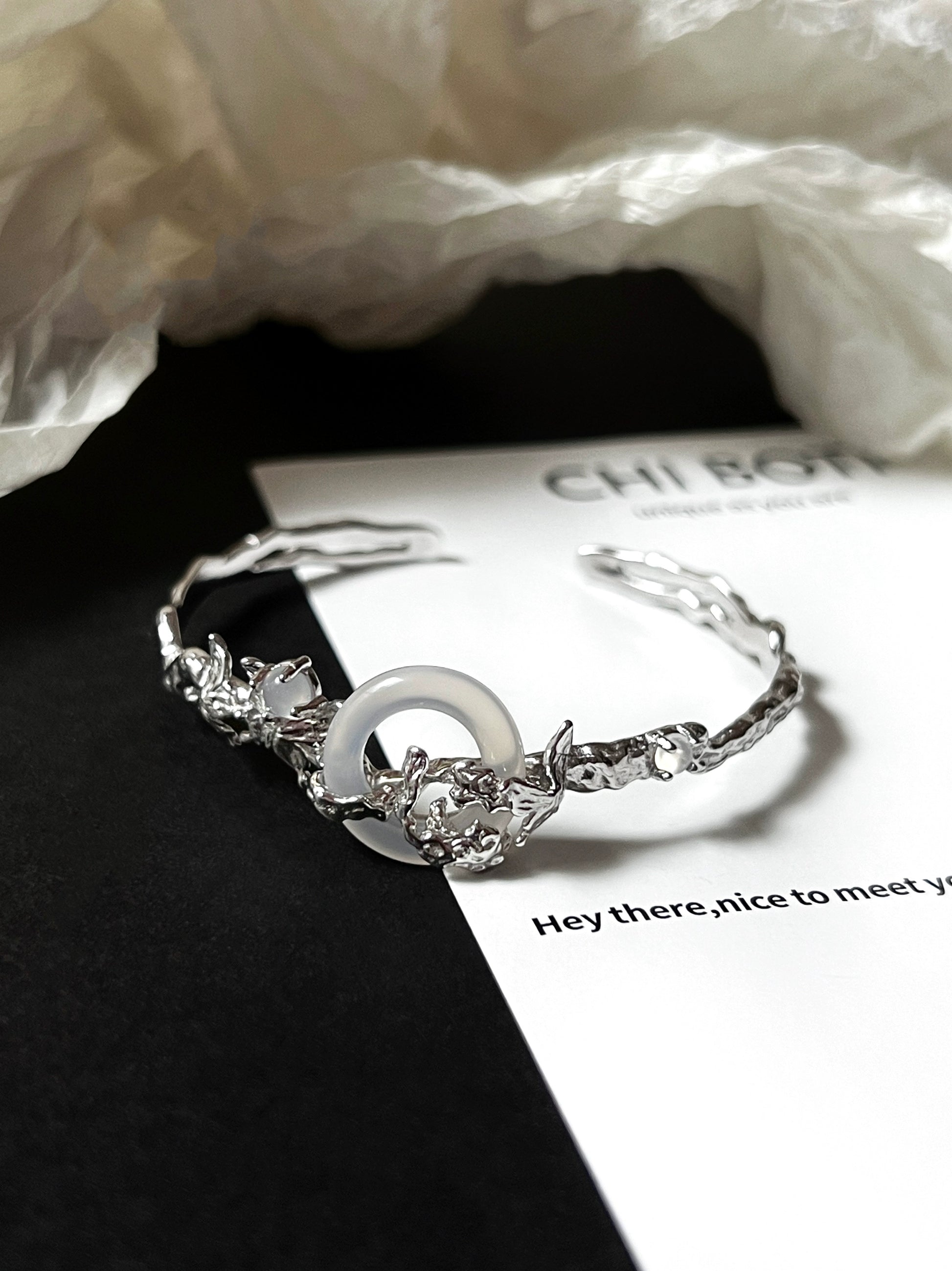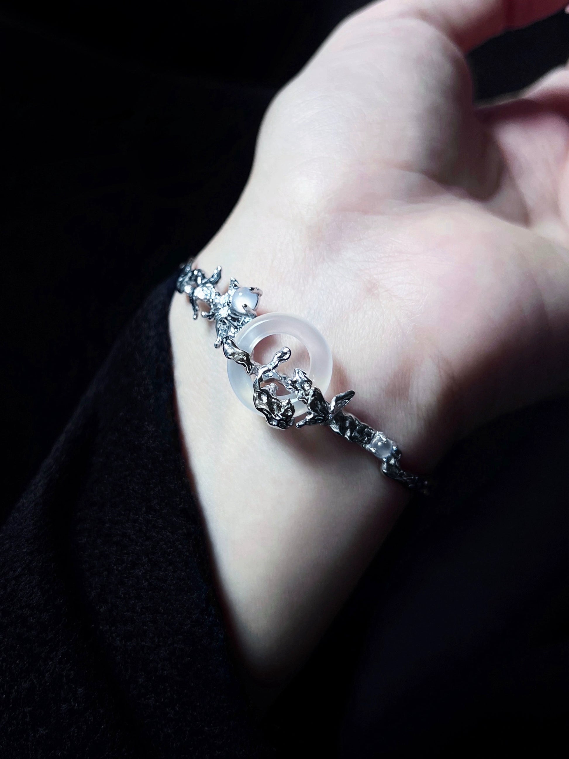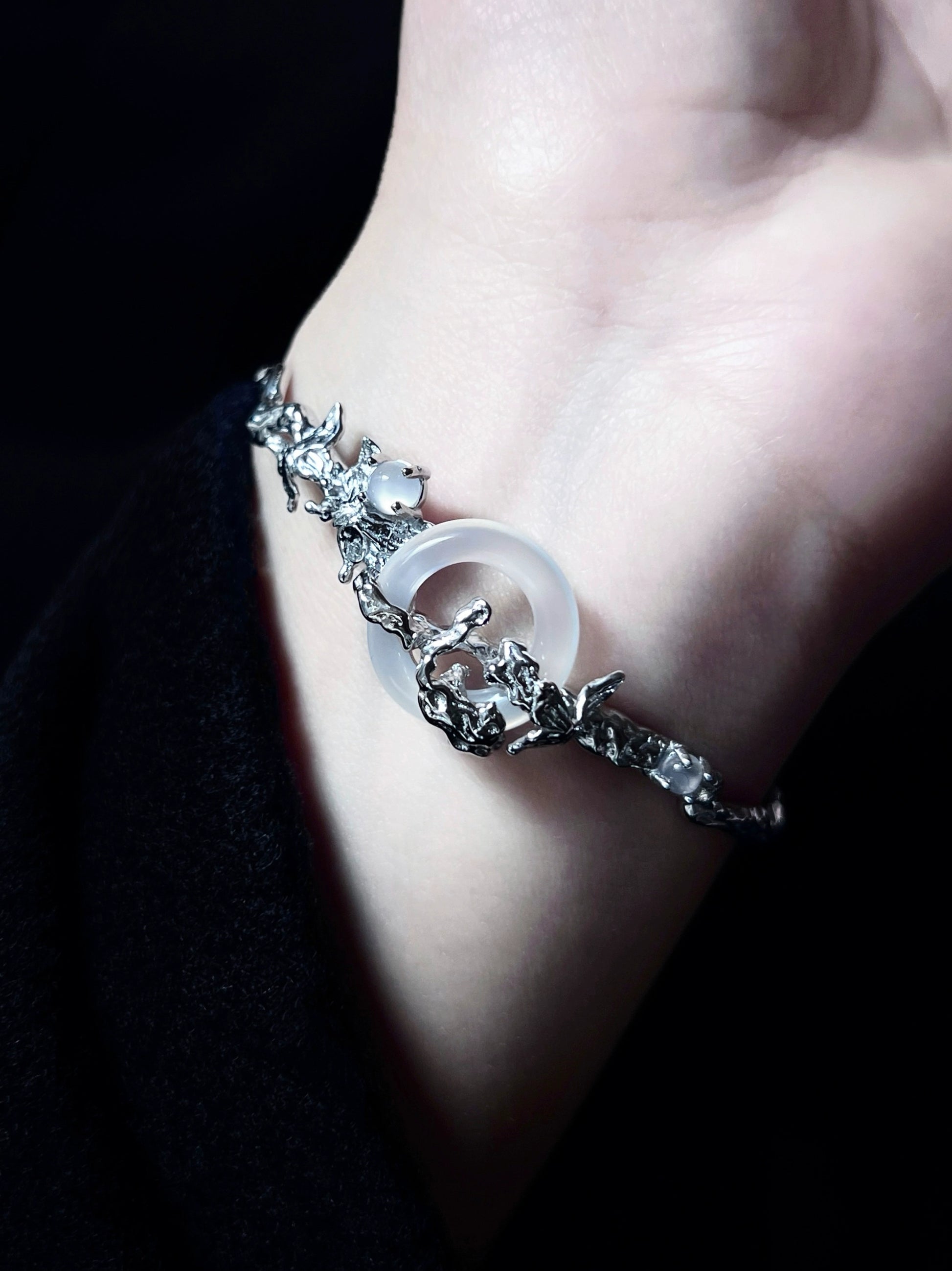 "Snow Mist Butterfly Valley" Agate Bracelet