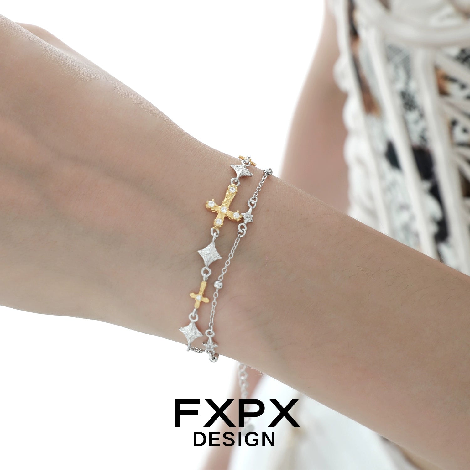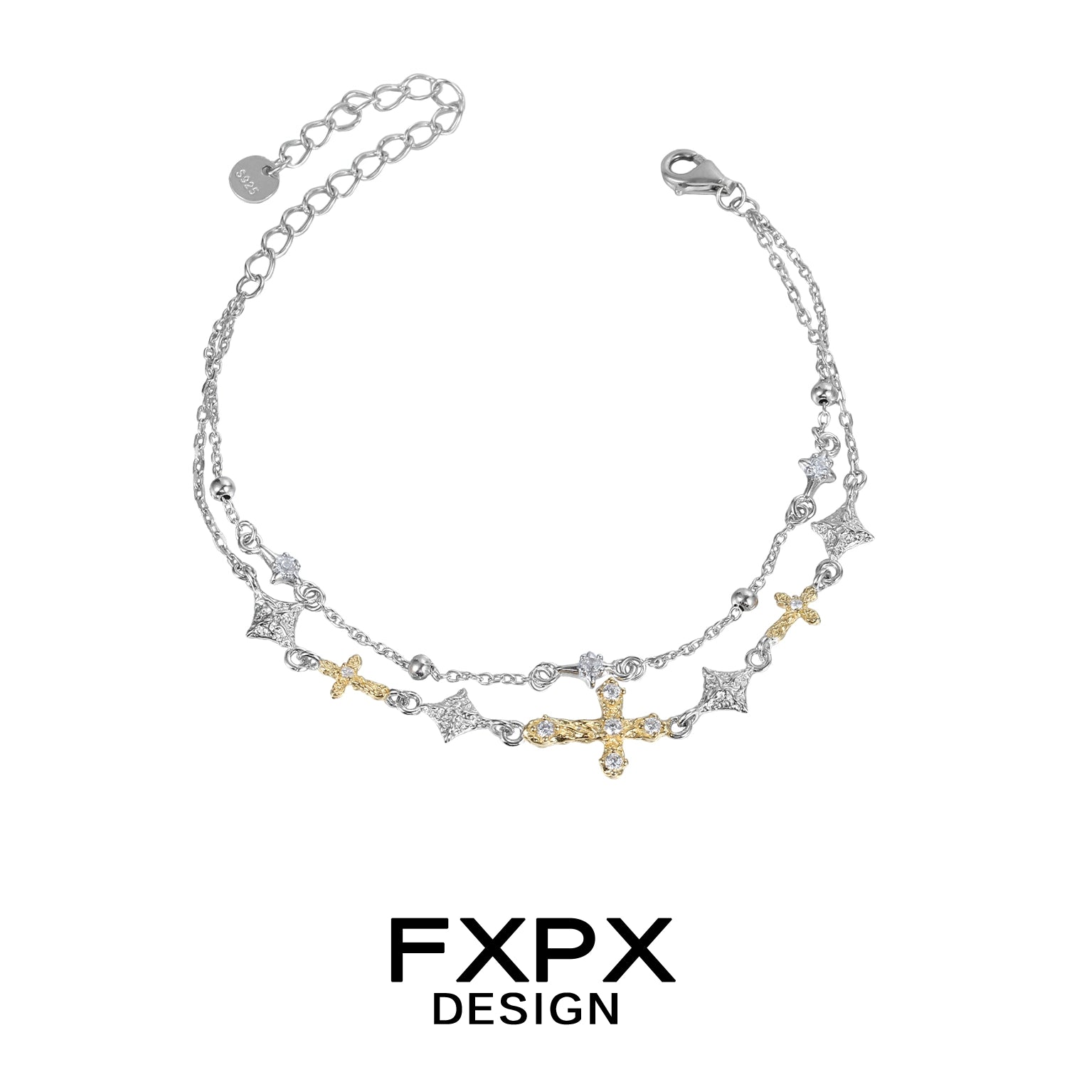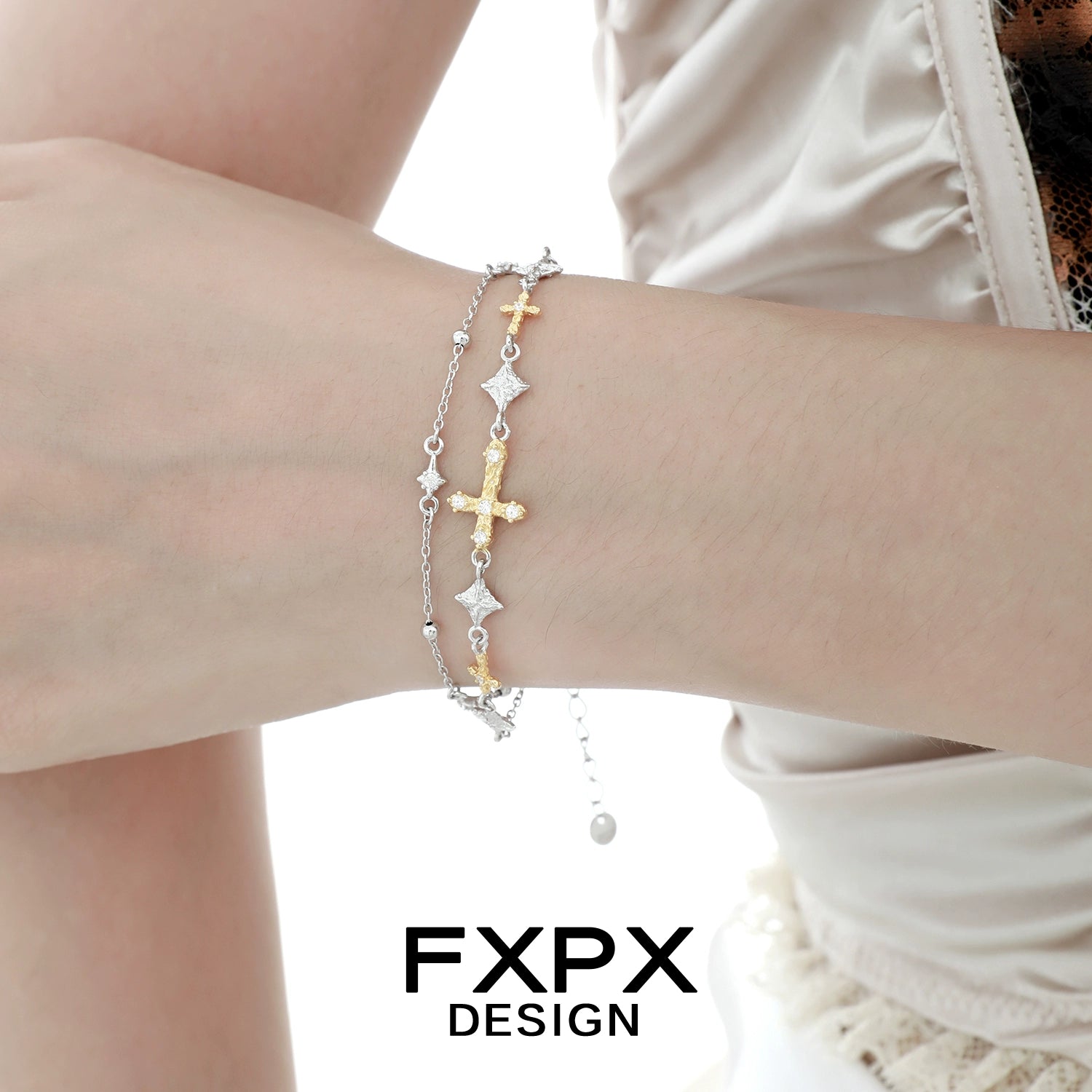 Golden Faith Cross Silver Bracelet