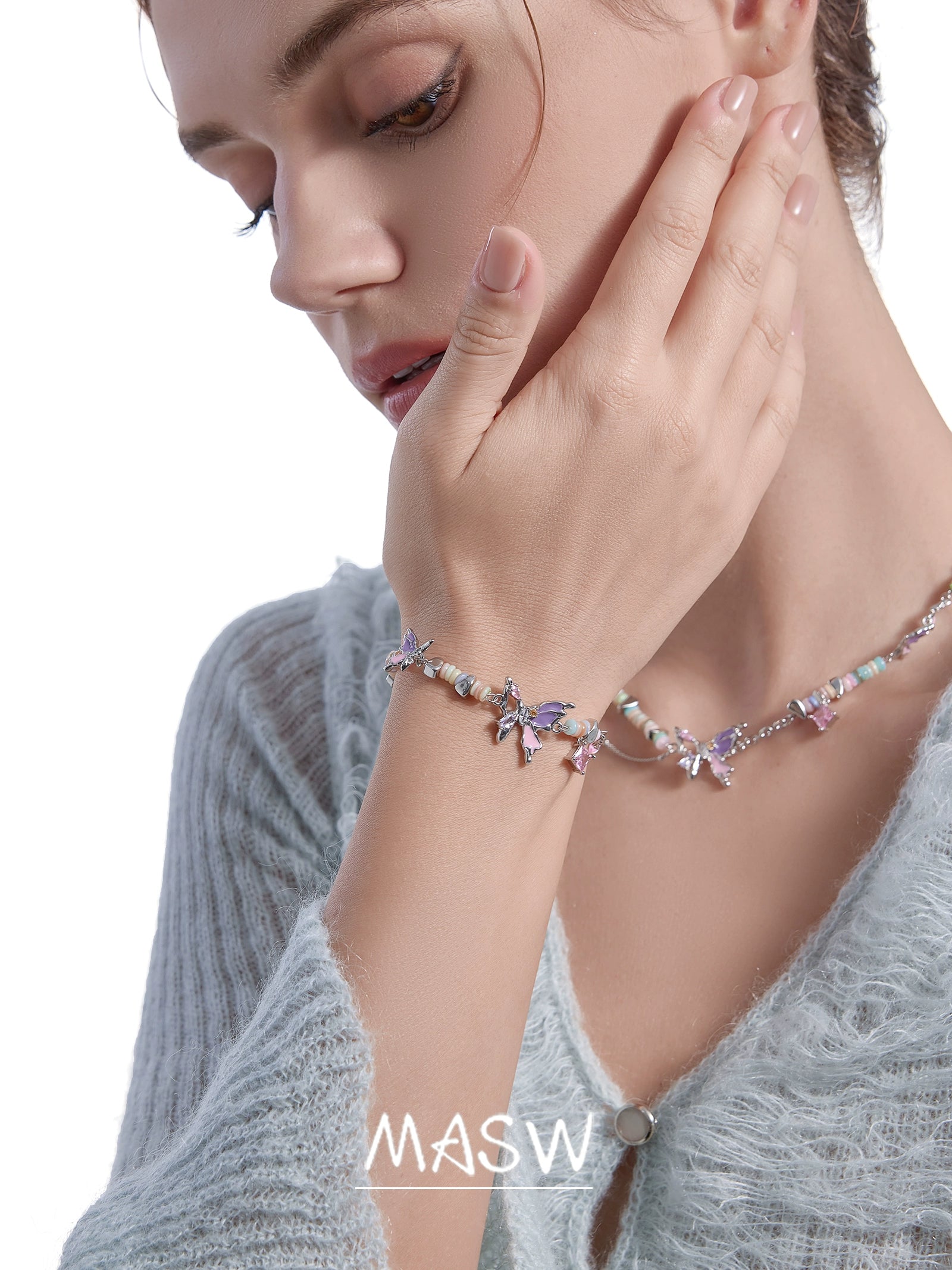 Oil-Paint Butterfly Bead Bracelet
