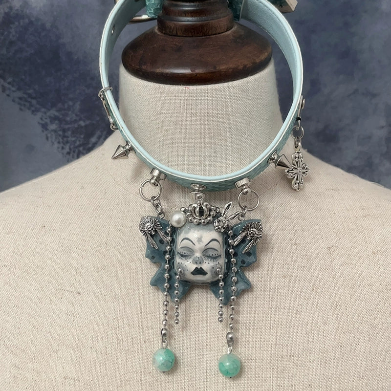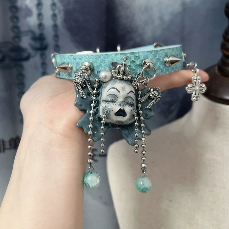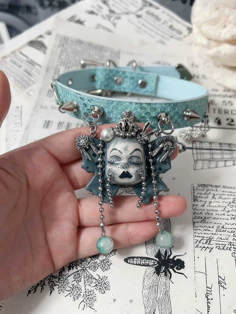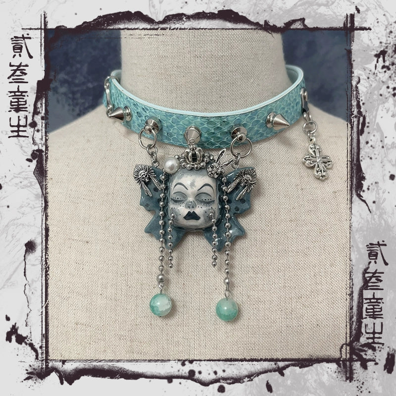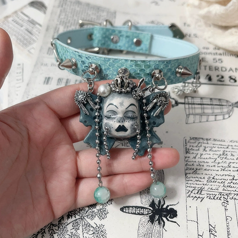Choker-Ersan Tongsheng Original Necklace Butterfly Doll Handmade Niche Gothic Dark Wind Heavy Metal Punk Collar