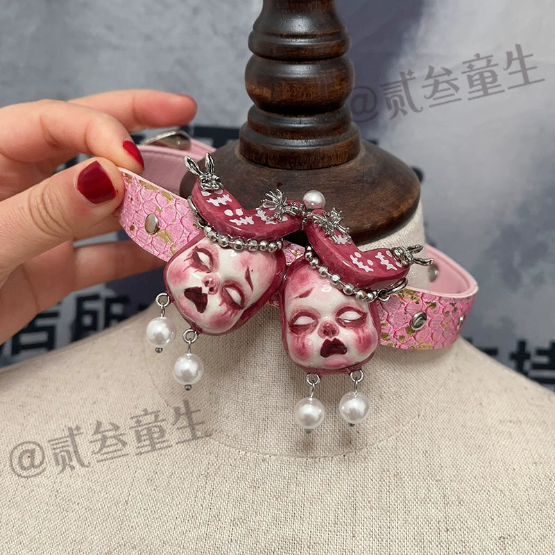 Choker-Two Three Tongsheng Original Doll Necklace Female Dark Niche Hottie Premium Sense Choker Clavicle Chain Sweet Cool Soft Girl