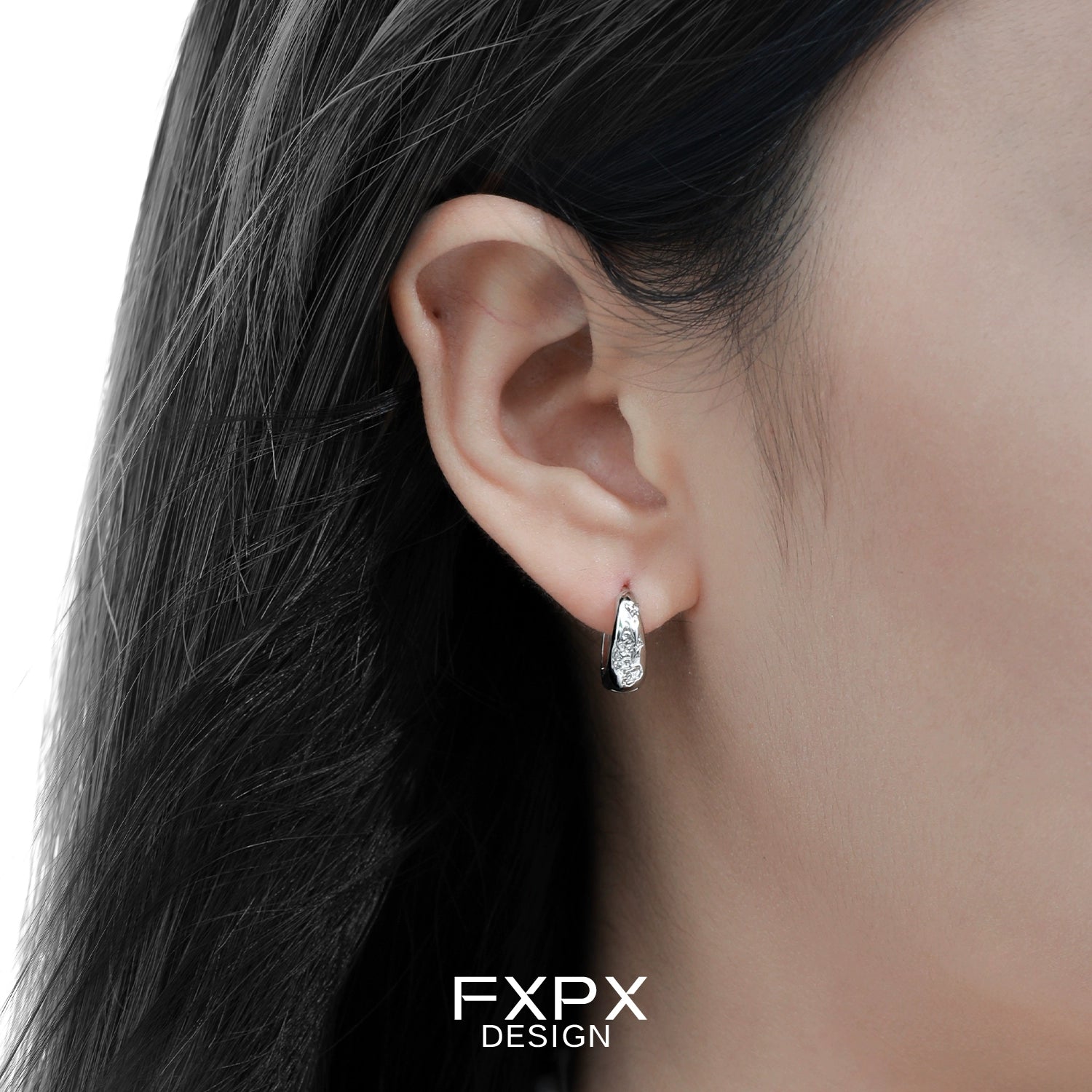 Metallic Fracture Silver Ear Clips