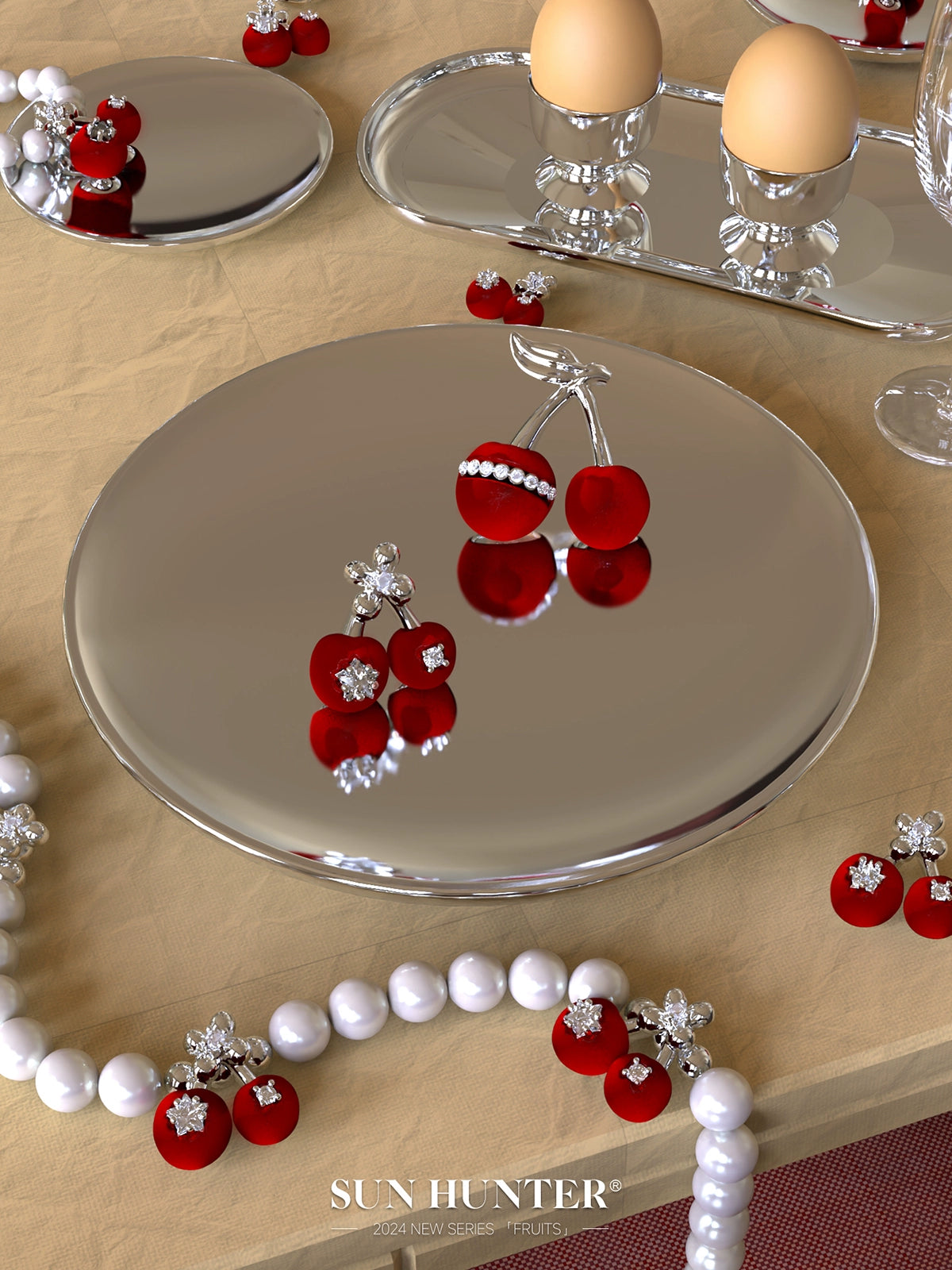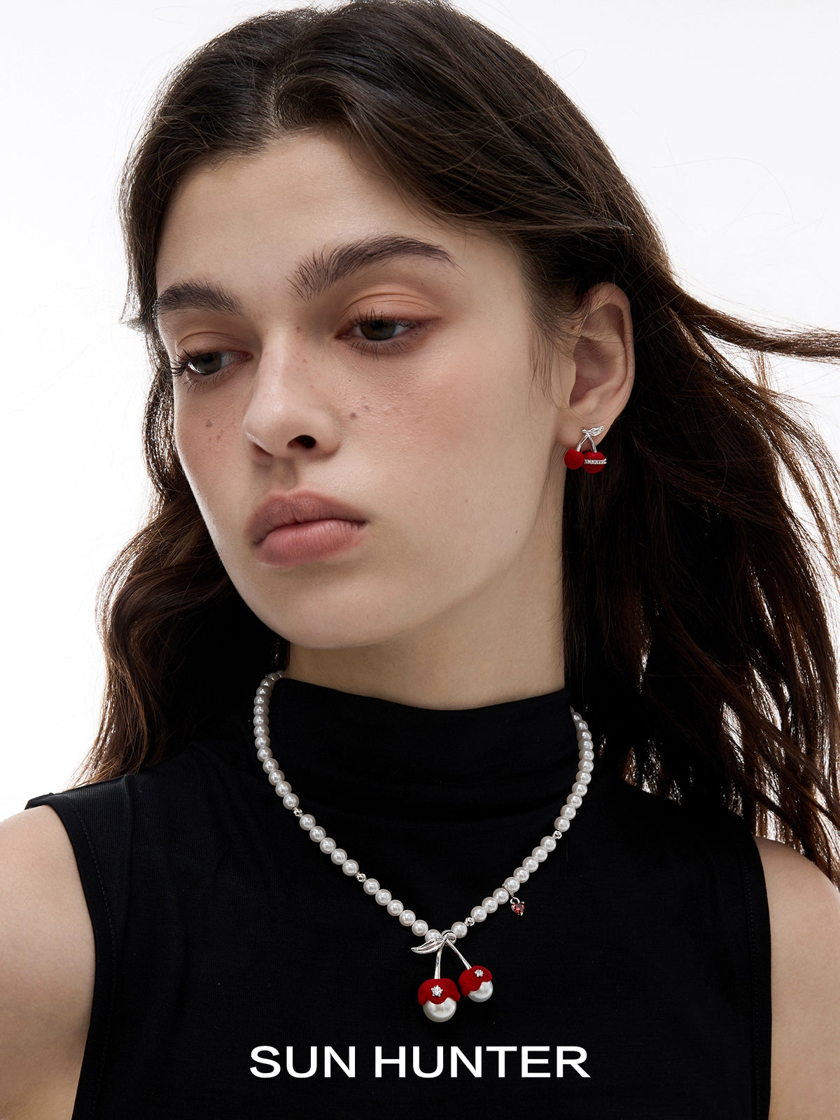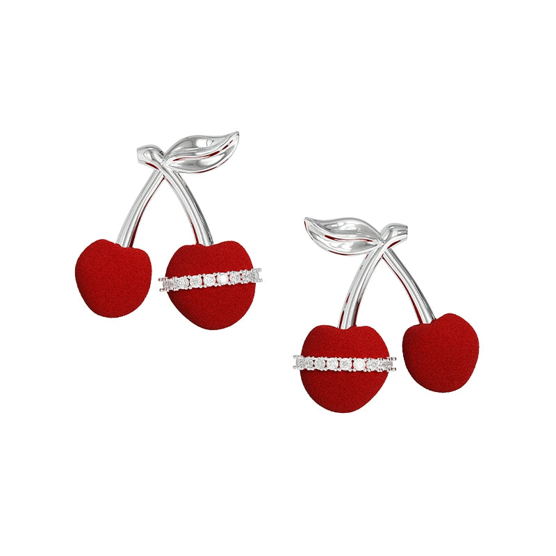 Cute Velvet Cherry Stud Earrings