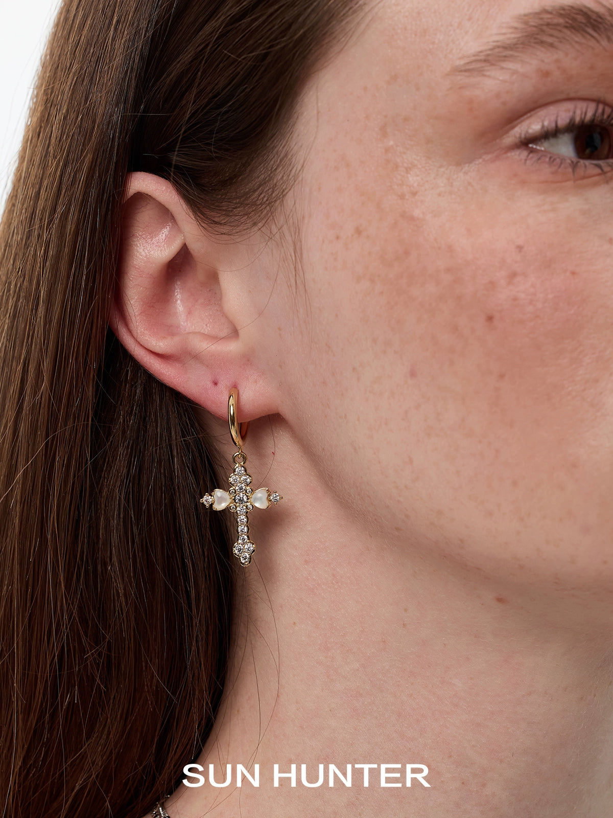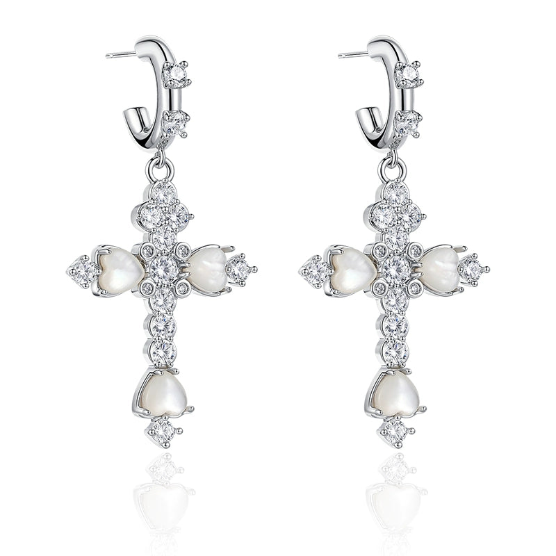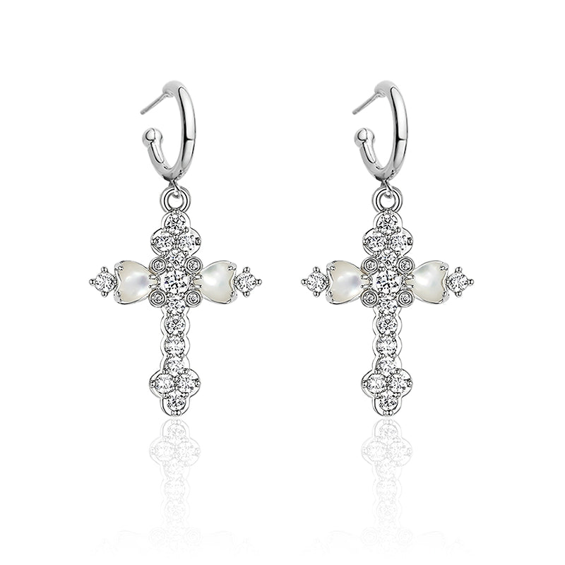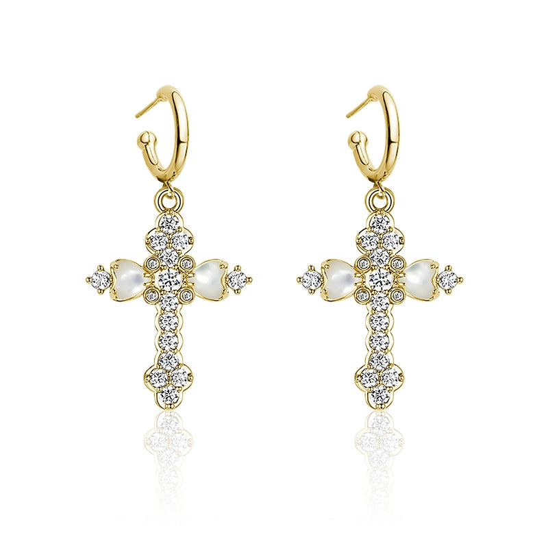 Vintage Fritillary Cross Zircon Earrings