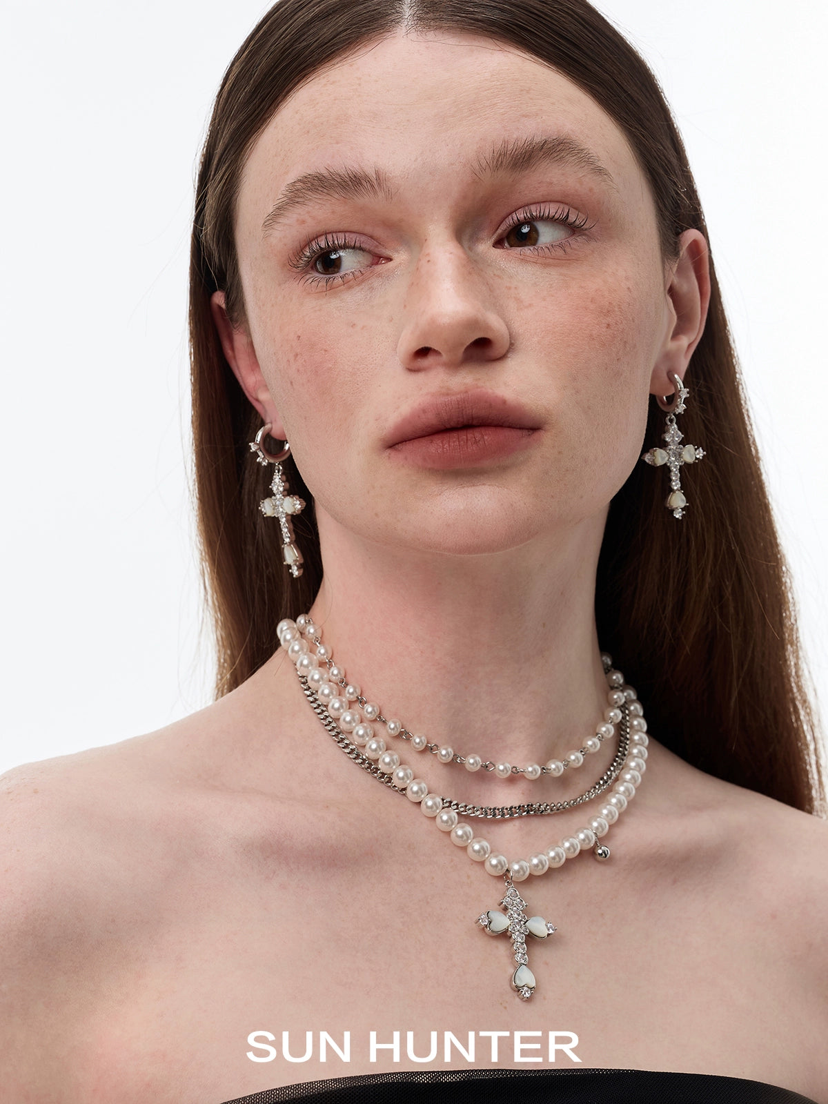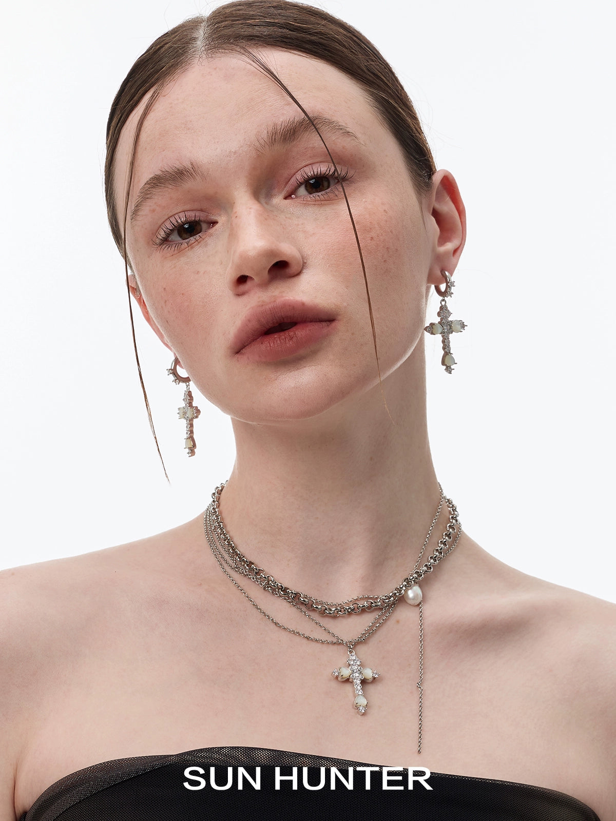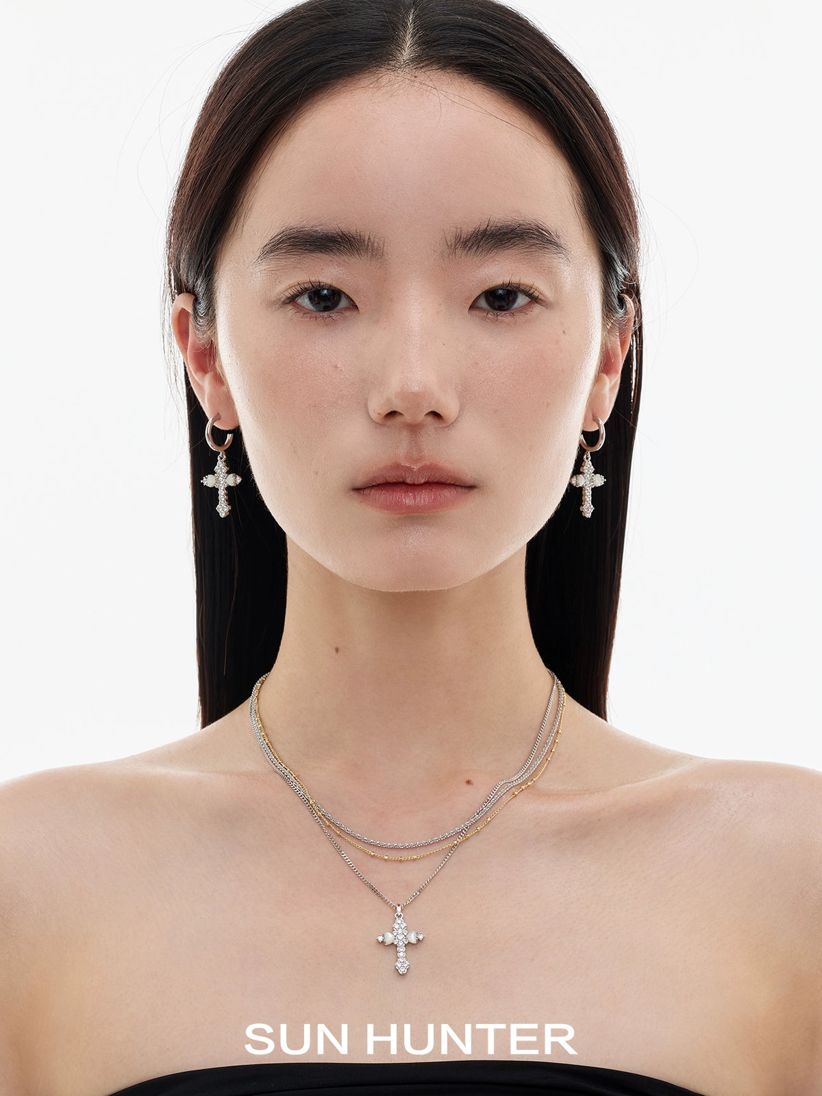 Vintage Fritillary Cross Zircon Earrings