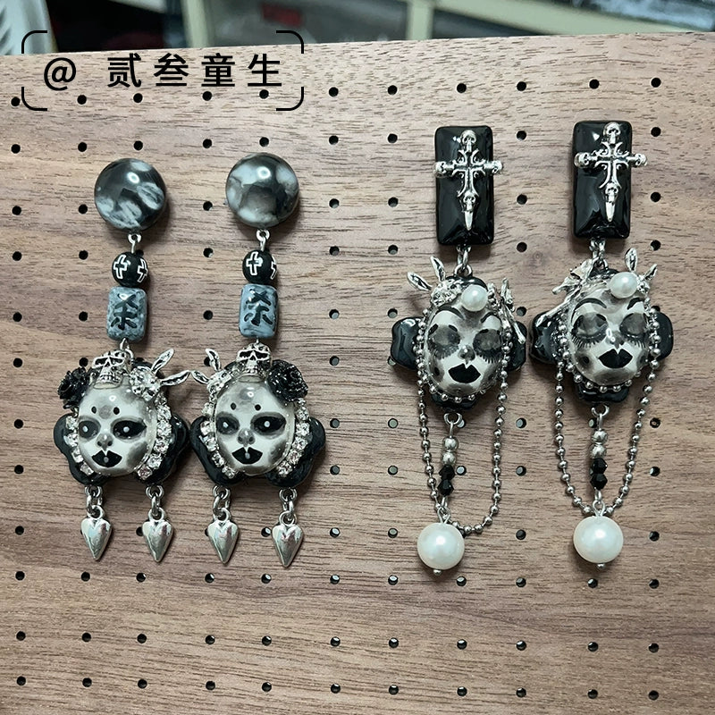 Earrings & Ear Cuffs-Two Three Children's Original Design Diablo Goth 925 Silver Needle Earrings Spice Girls Niche Handmade Cool Temperament Earrings