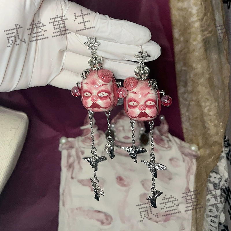 Earrings & Ear Cuffs-Two Three Children's Original Earrings Doll Cold Wind Bird Premium Sense Pendant Earrings Sweet Cool Men's and Women's Tide