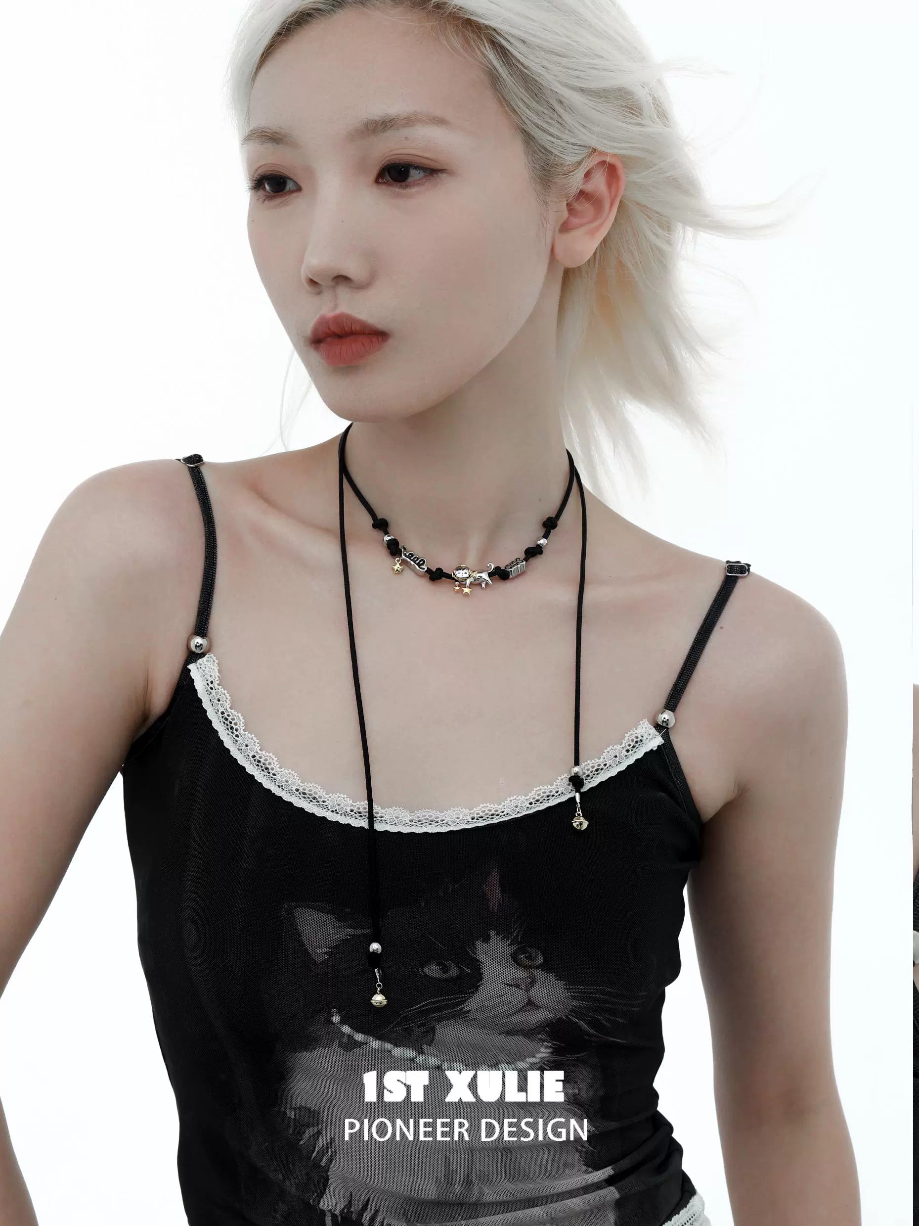 Y2K Cute Kitty Leather Necklace