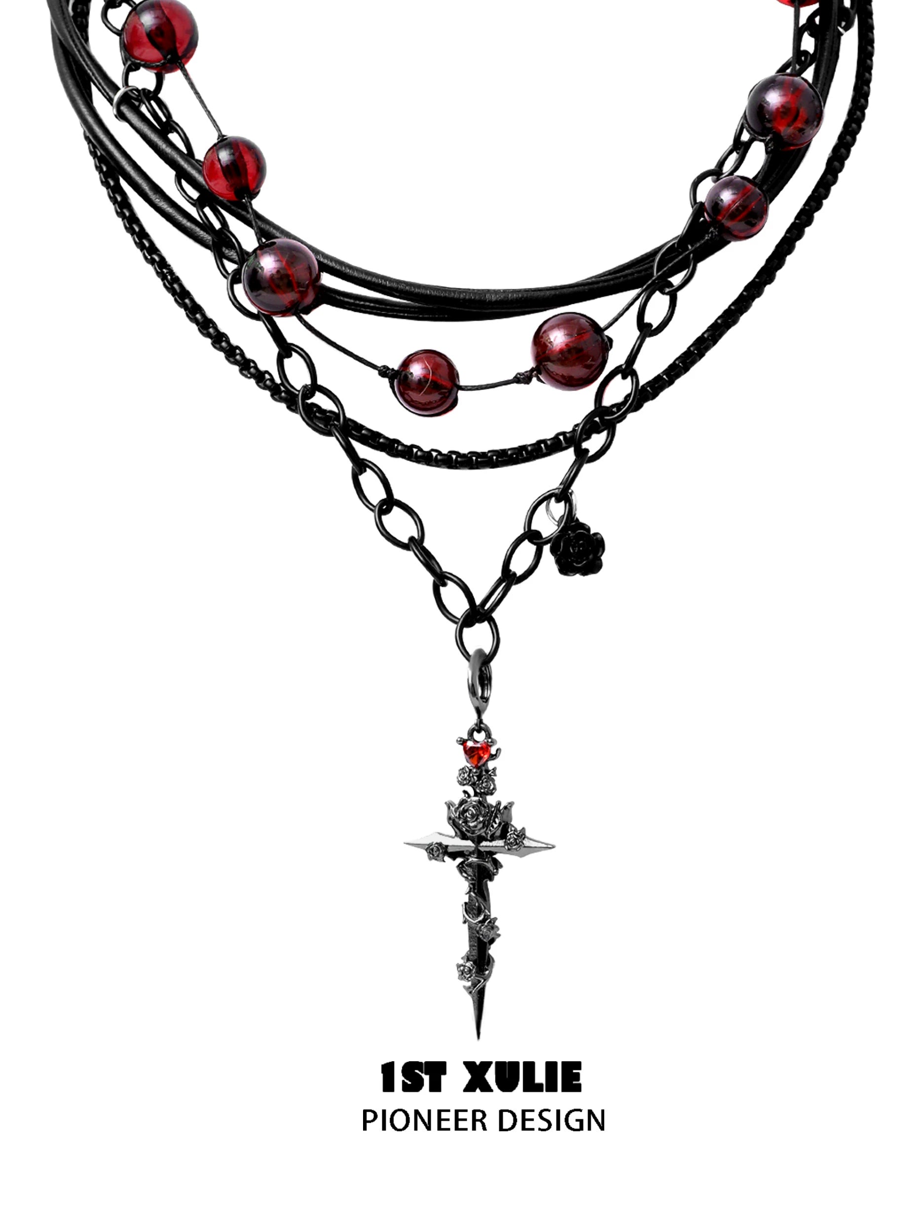 Gothic Dark Cross Double-layer Necklace