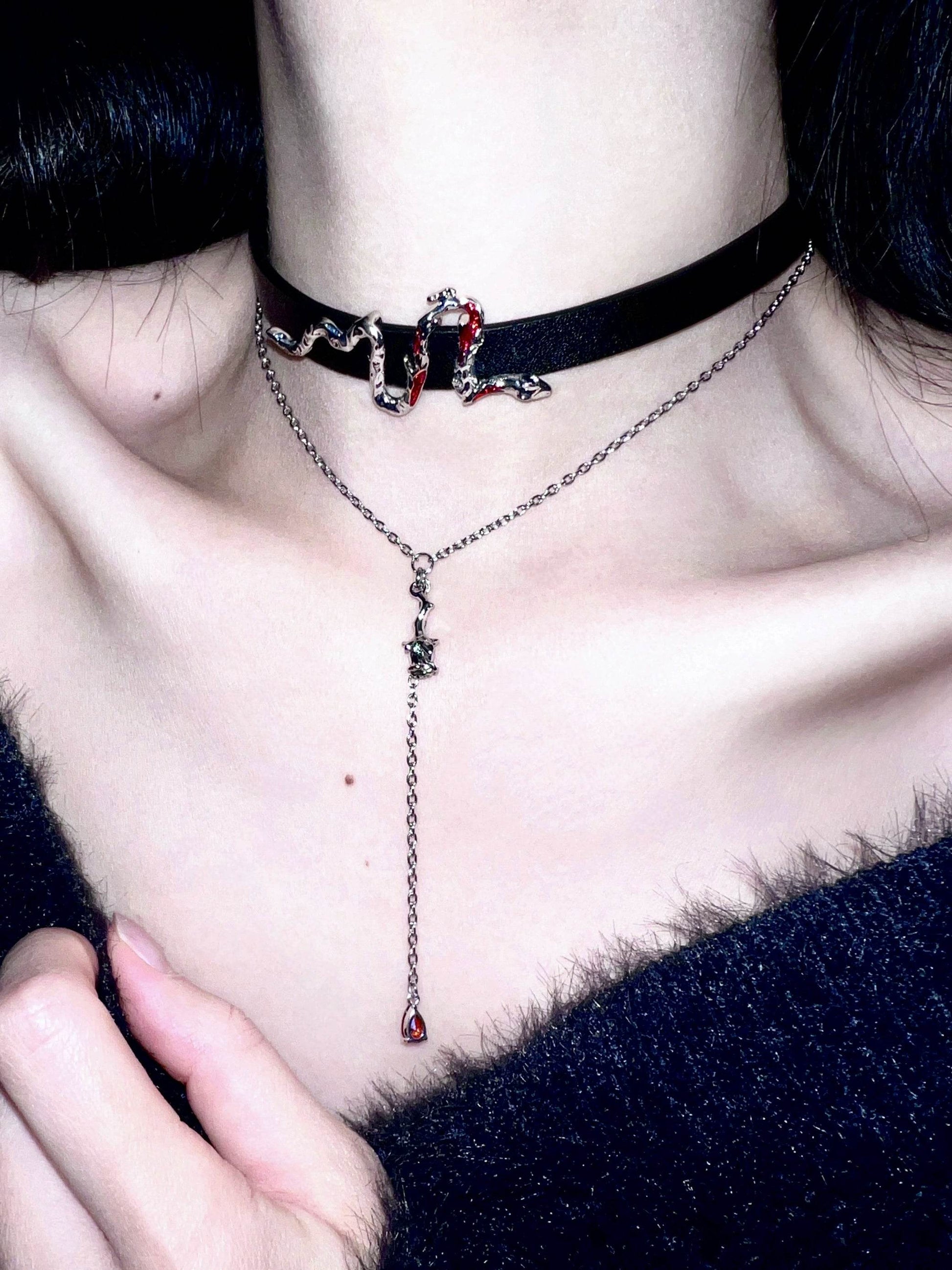 "Blood Amber Snake" Winding Necelace