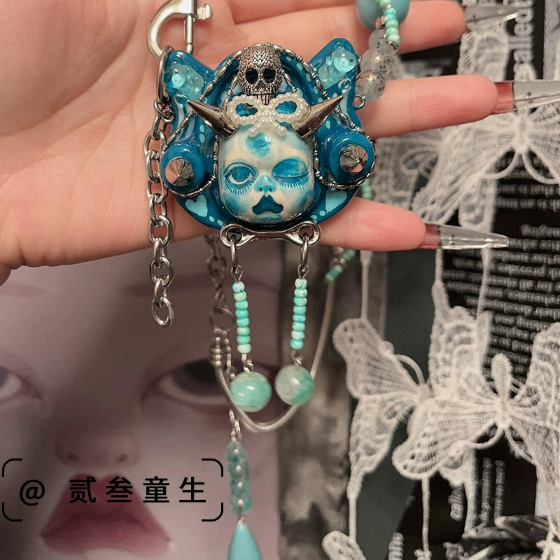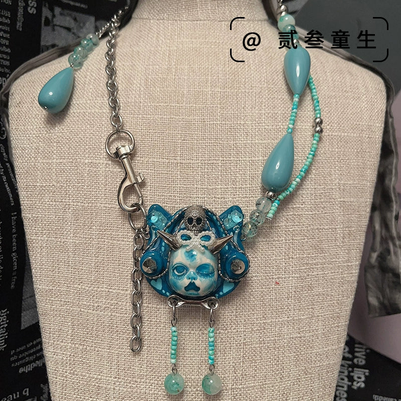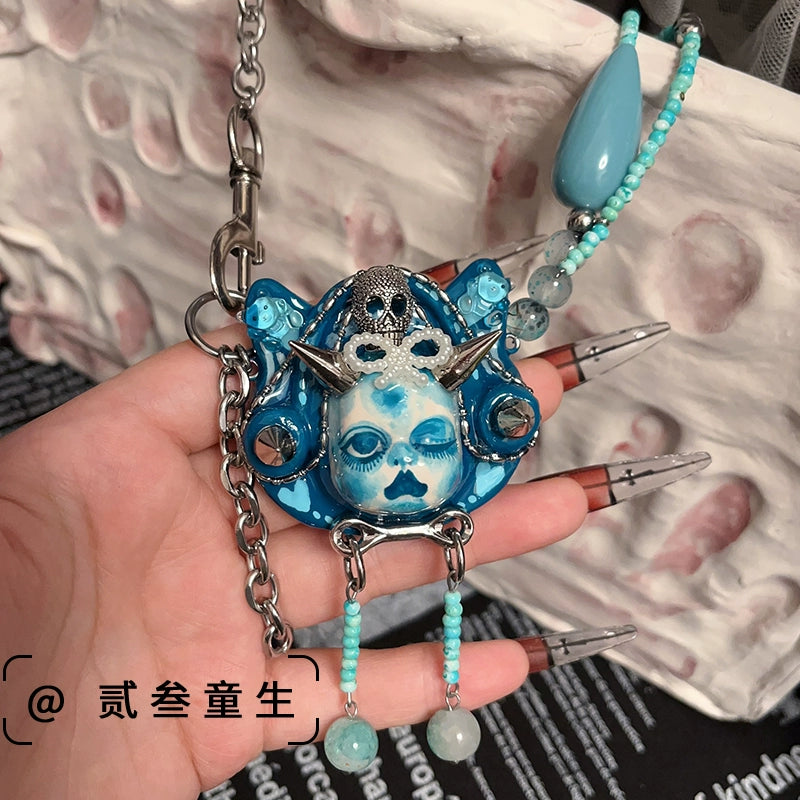 Necklaces-Ersan Tongsheng Original Cat Doll Knot Modeling Blue Spice Girl Sweet Cool Subculture Niche Design Trendy Necklace