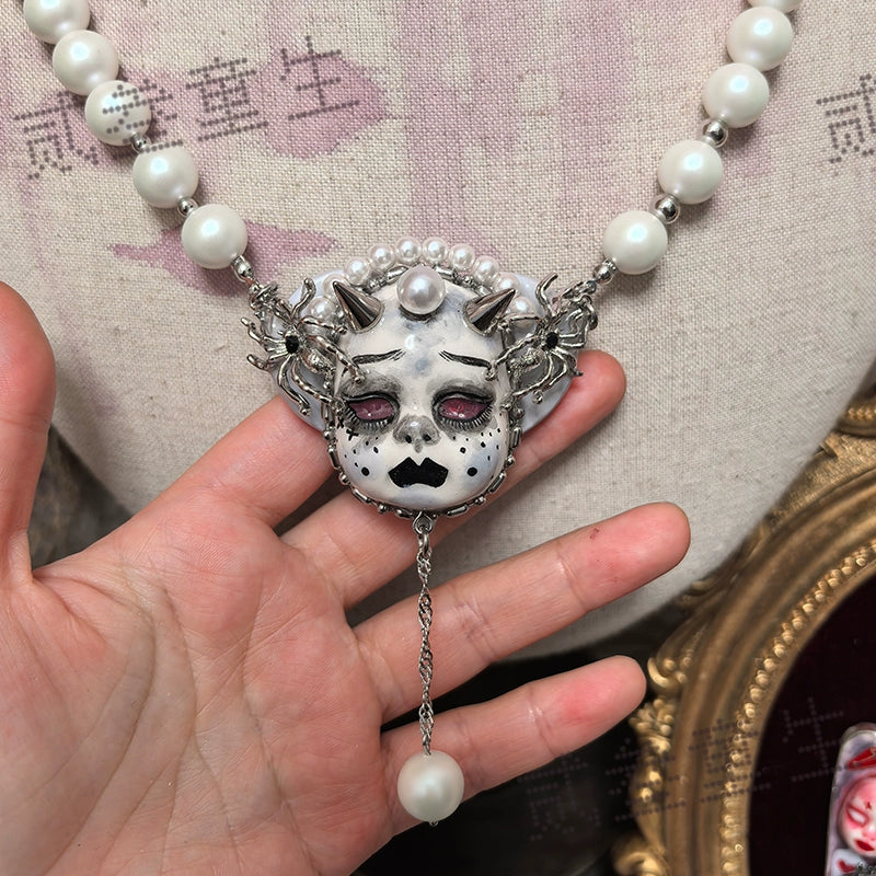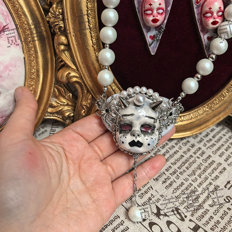 Necklaces-Ersan Tongsheng Original Design Dark Subculture Punk Style Imitation Treasure Sweater Chain Necklace Niche