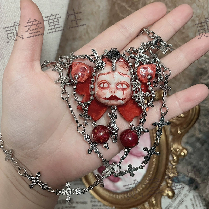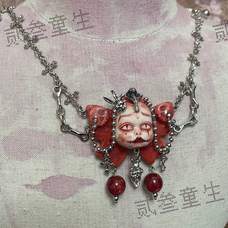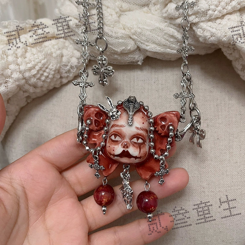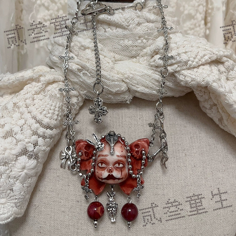 Necklaces-Ersan Tongsheng Original Handmade Clay Spice Girl Dark Butterfly Decadent Cross Doll Niche Subculture Necklace