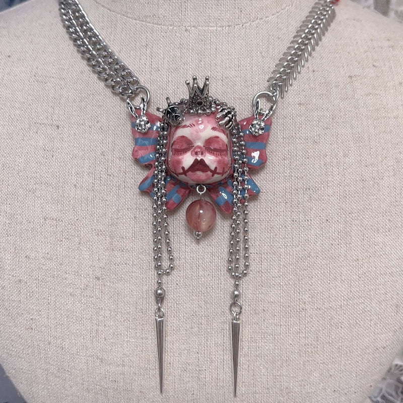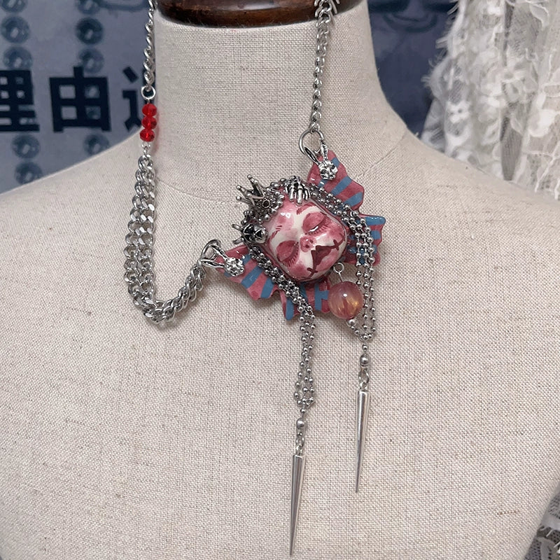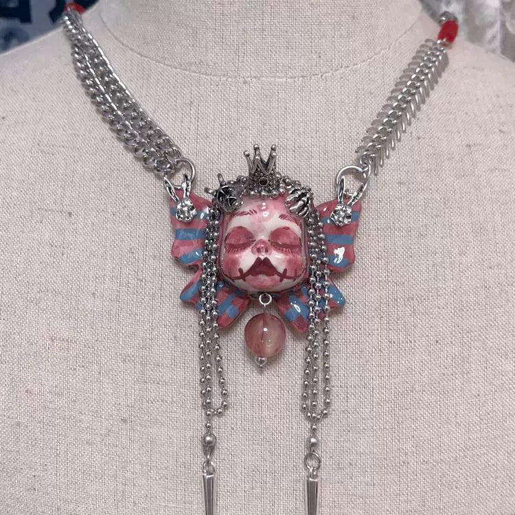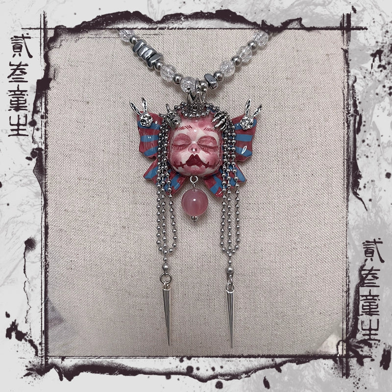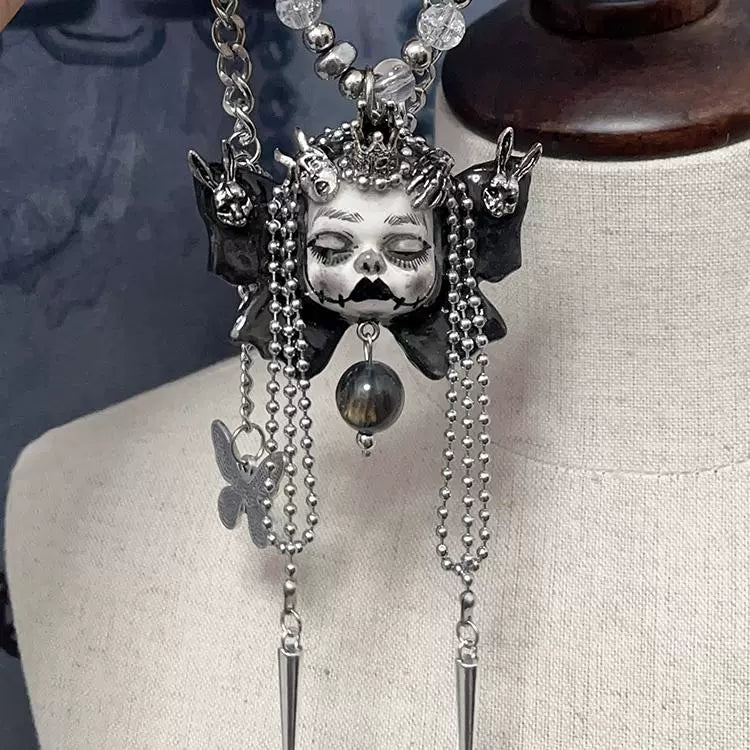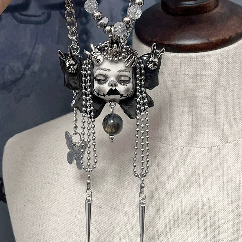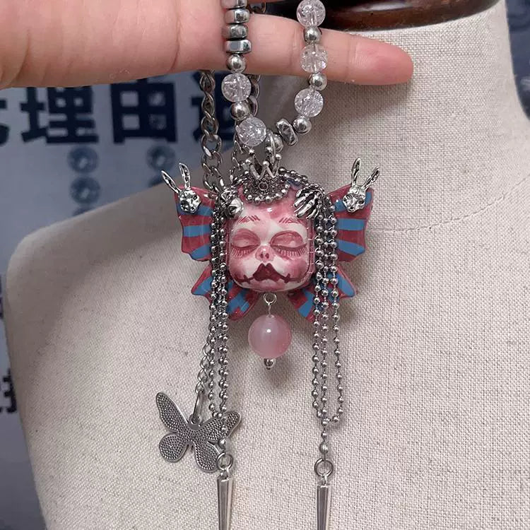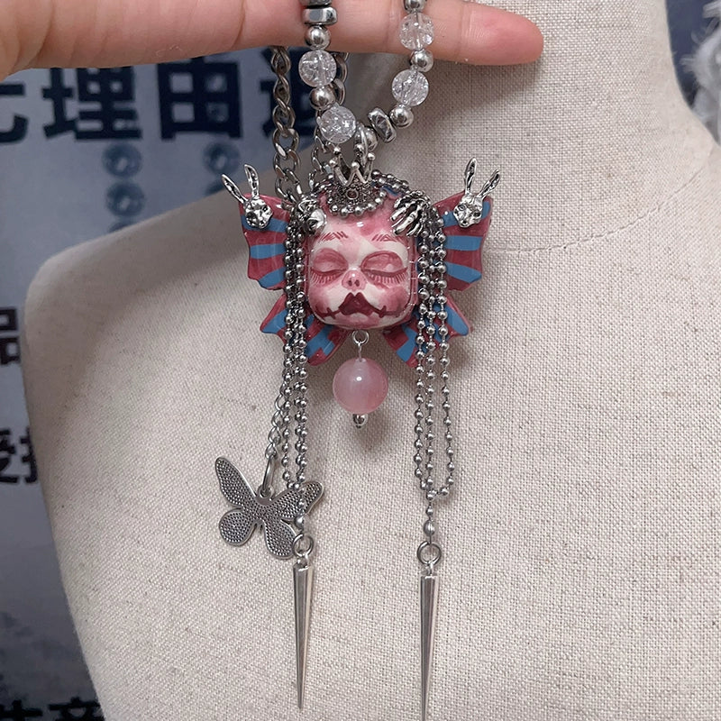 Necklaces-Ersan Tongsheng Original Handmade Clay Spice Girl Dark Butterfly Decadent Wind Doll Niche Millennium Subculture Necklace