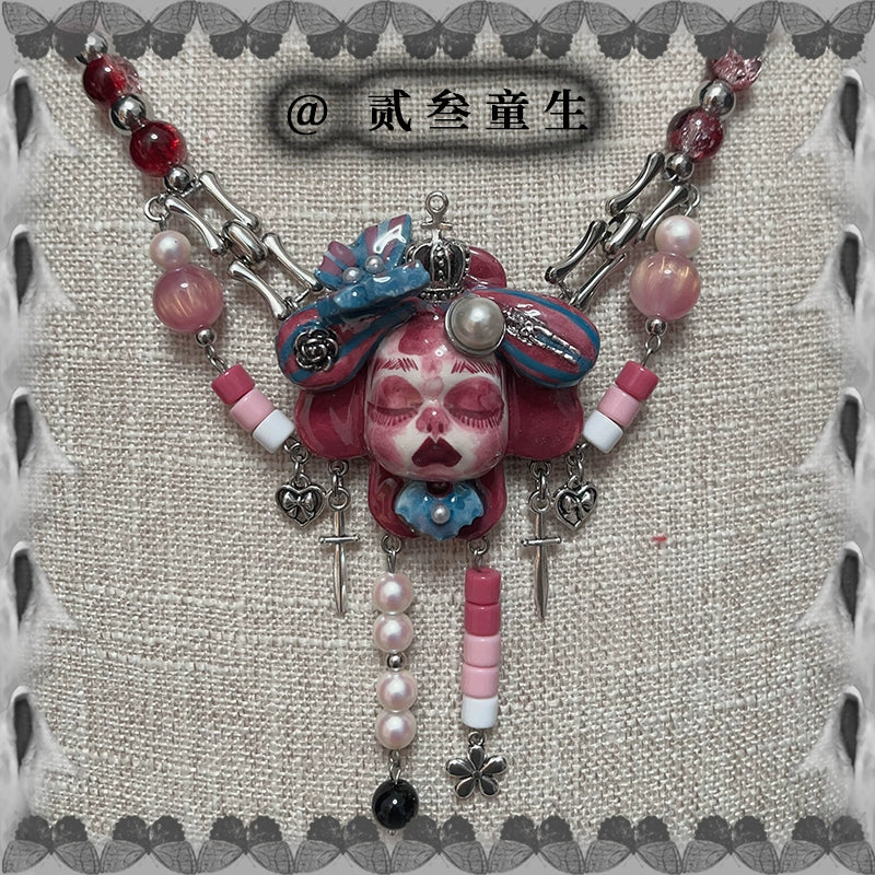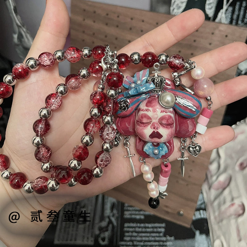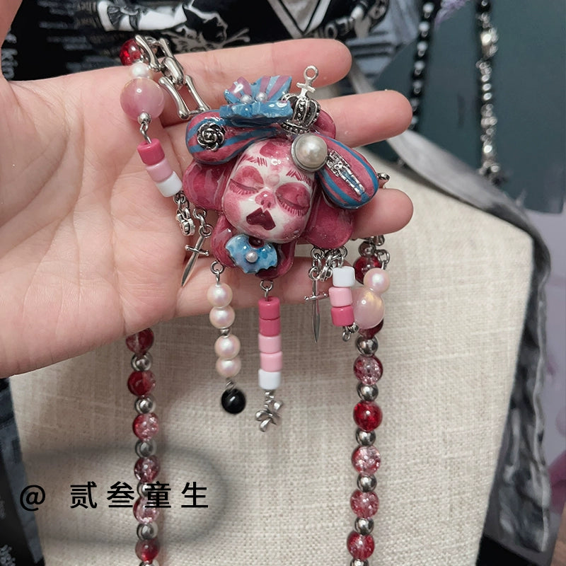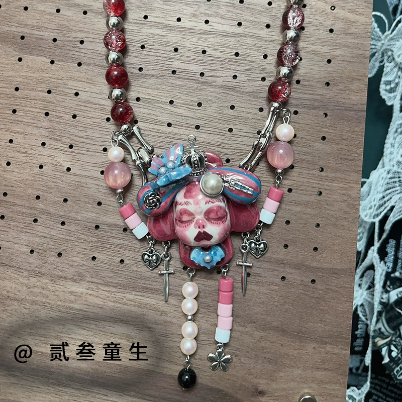 Necklaces-Ersan Tongsheng Original Handmade Cross Necklace Female Niche Gothic Design Sweet Cool Y2K Wind Pendant Cute Spice Girl