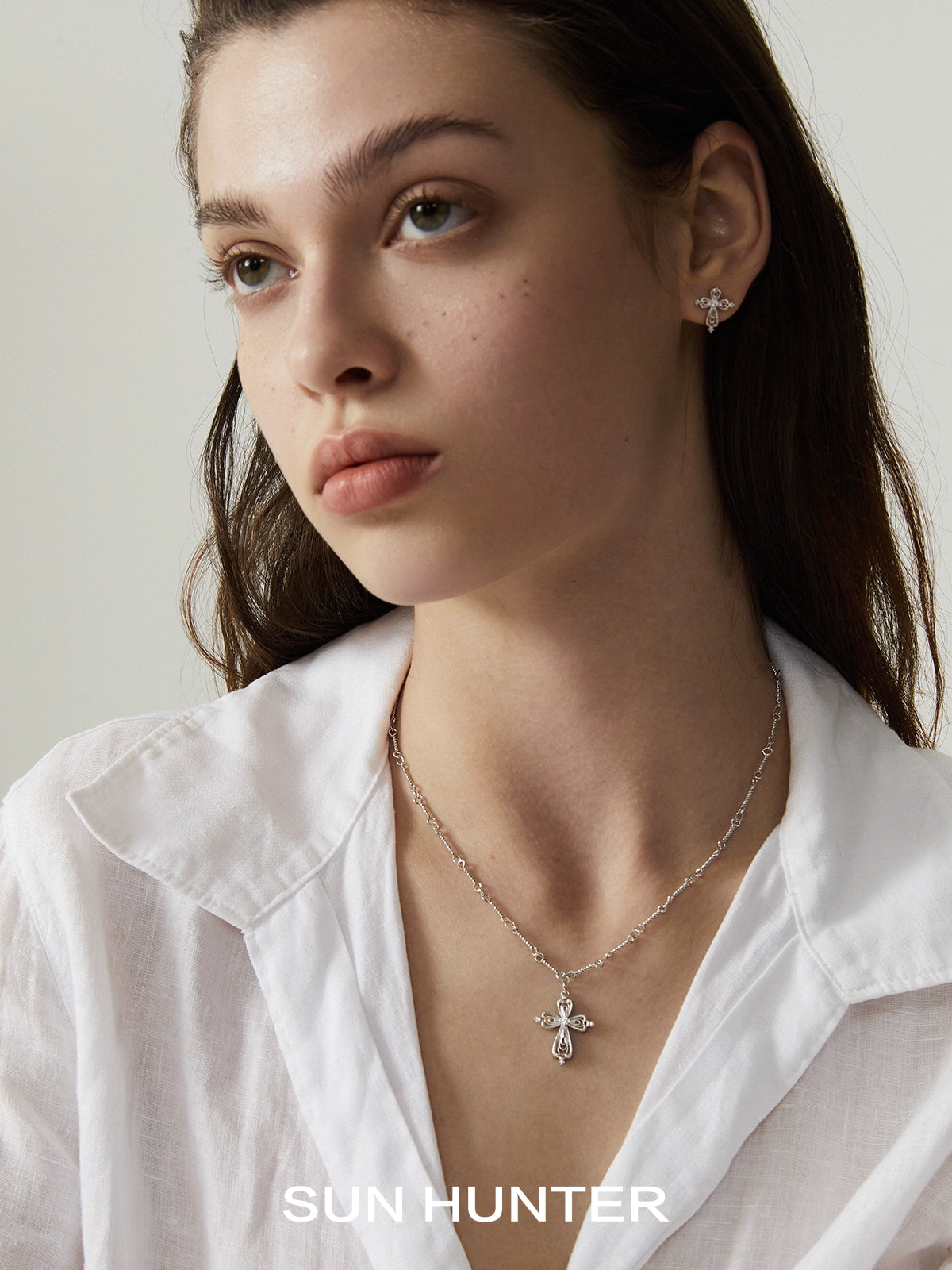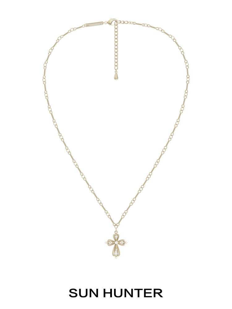 "Lace Shimmer" Cross Necklace