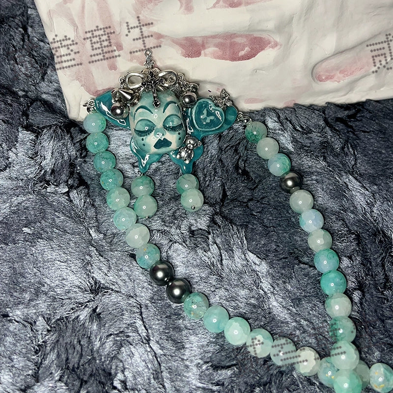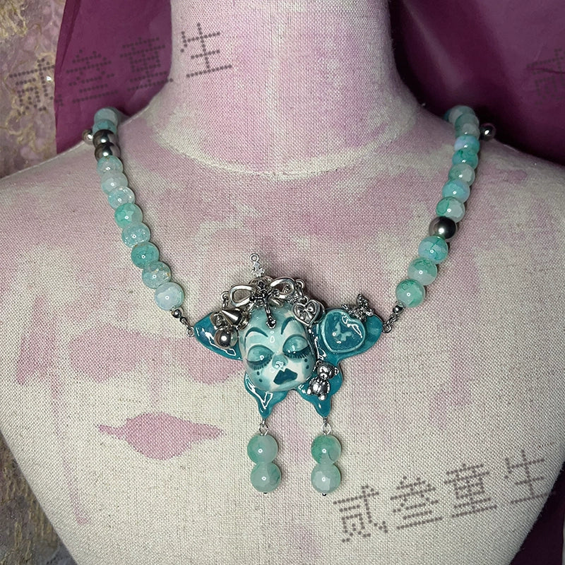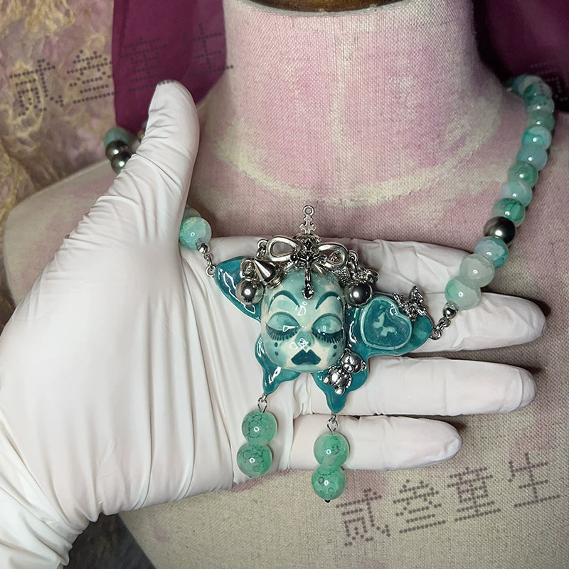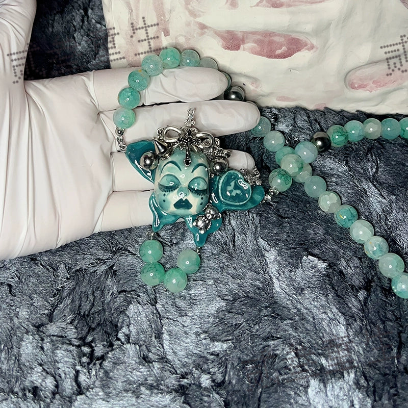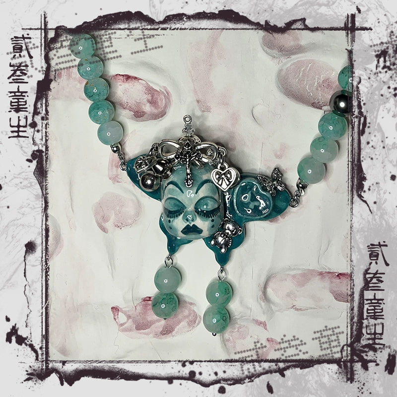 Gothic Cursed Doll Green Beaded Choker