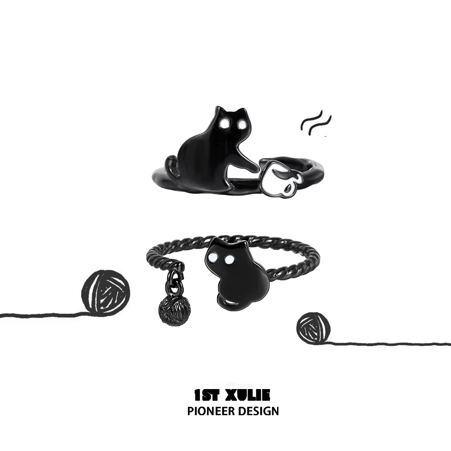 Y2K Playful Black Cat Toy Ring