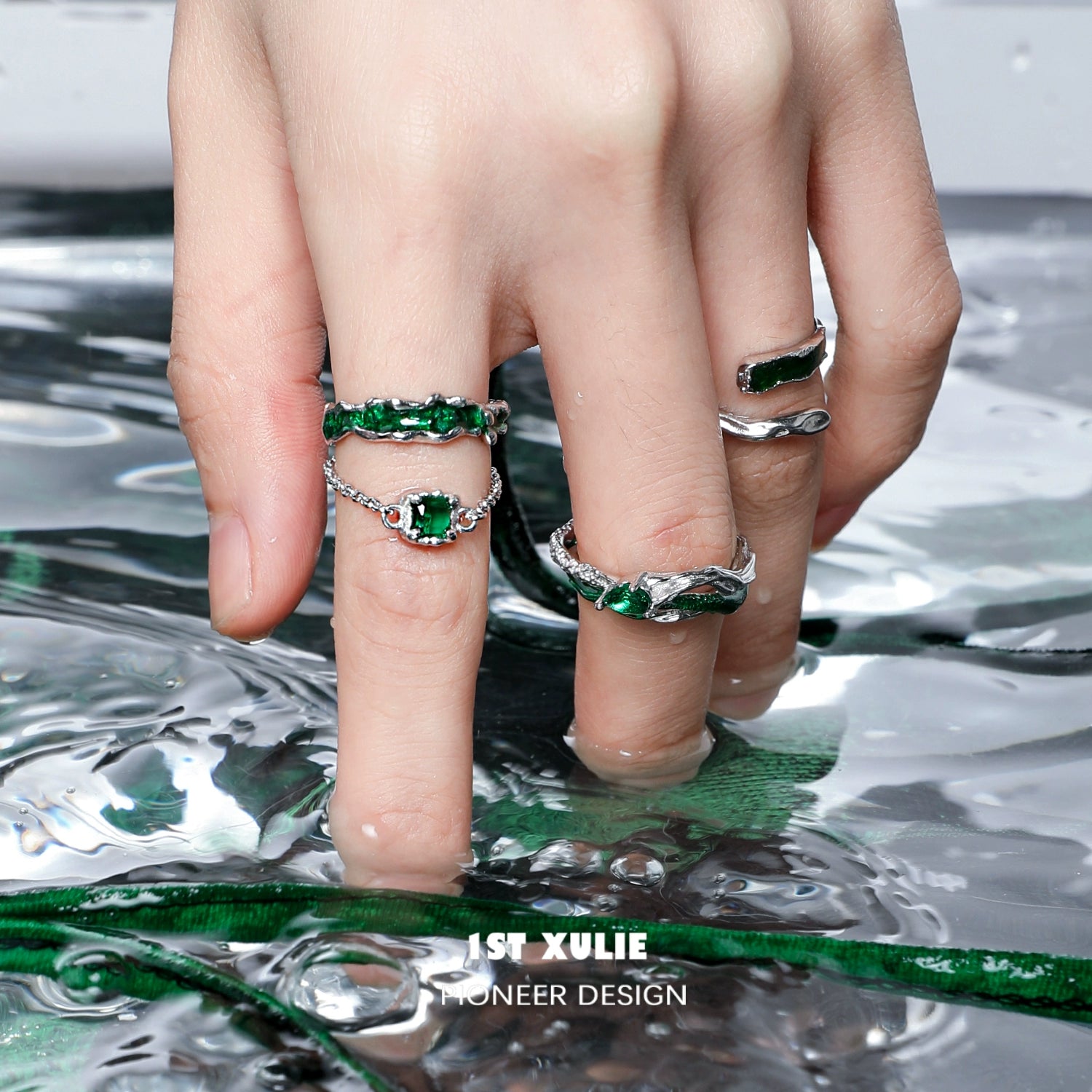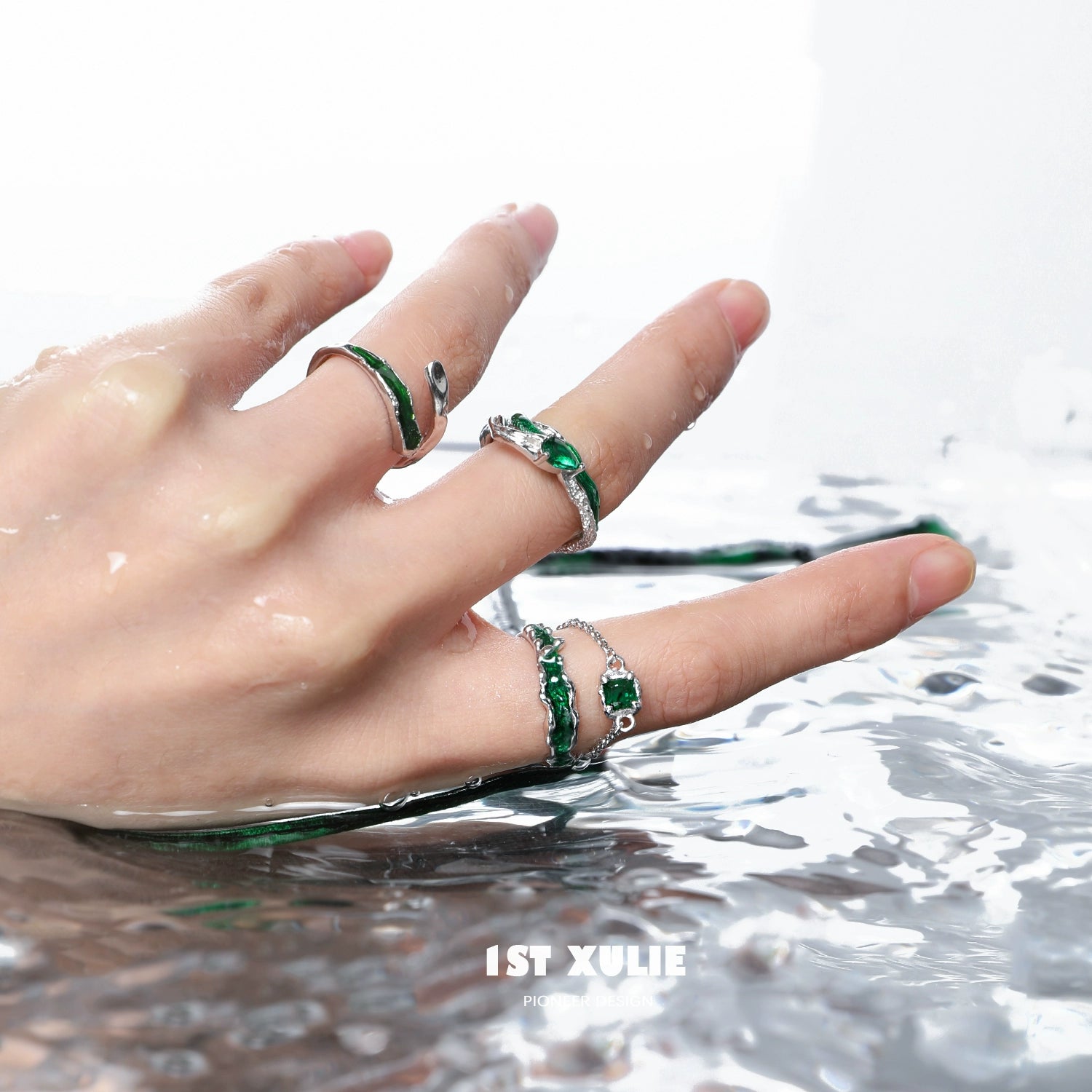 Slytherin Green Snake Chain Silver Ring
